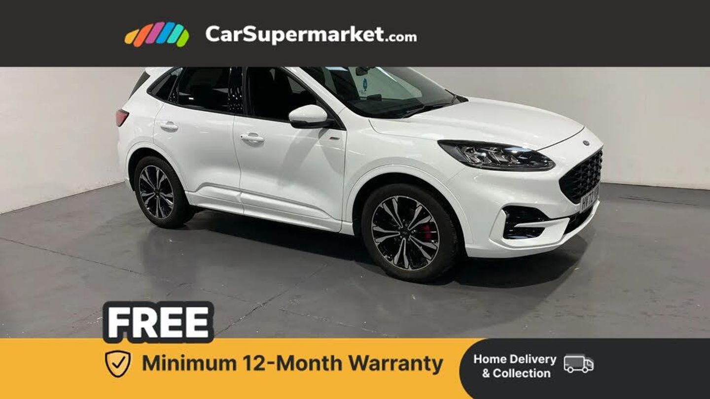 Sat Nav, Apple CarPlay, Parking Sensors, Lane Departure Warning, Power Opening Panoramic Roof, Privacy Glass, Quickclear Heated Windscreen, Heated Front Seats, Heated Rear Seats, Heated Steering Wheel, Keyless Entry;High-spec self-charging hybrid Kuga with Power Opening Panoramic Roof, Sat Nav, Apple CarPlay, Parking Sensors, Lane Departure Warning, Privacy Glass, Quickclear Heated Windscreen, Heated Front & Rear Seats, Heated Steering Wheel and Keyless Entry. Optional extras include Frozen White paint and Partial Sensico Rapton Cloth interior, totalling £250. Last serviced: 11/02/2026 MOT due: 22/11/2026