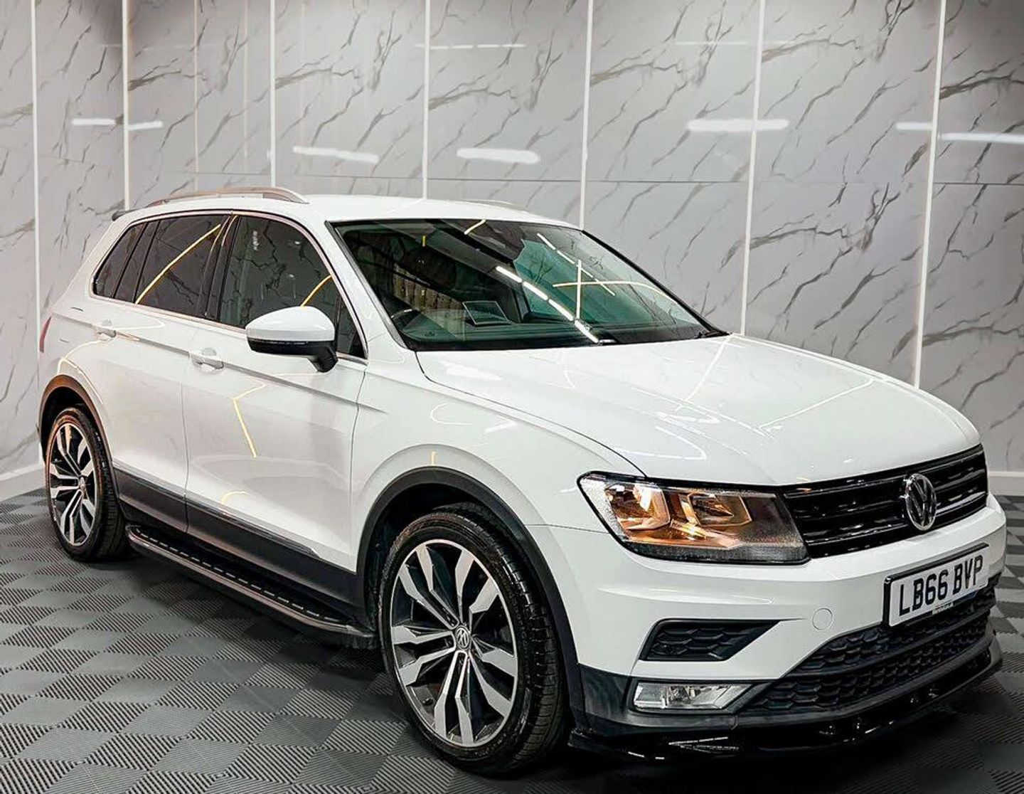 Finished in a sleek Pure White, the Volkswagen Tiguan is not just a car; it's a statement. Its sophisticated design is complemented by a host of premium extras that elevate your driving experience to new heights. Enjoy the convenience of Keyless Entry with an Electric Boot Lid, making loading and unloading a breeze. The 230V Socket in the Boot with Luggage Light ensures you're always prepared, whether you're heading on a road trip or simply running errands.