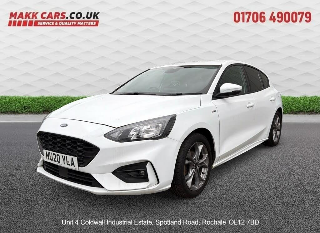 We are proud to present this lovely looking FORD FOCUS ST LINE from Makk Cars based in Rochdale. We are a family run dealership prioritizing excellent customer relations and satisfaction. The FORD FOCUS IS finished in WHITE Metallic paint and a Black interior with cloth. It is an 2 owner LOW mileage with many Extras The bodywork is very good as is the inside. The vehicle is supplied with 1 keys, FULL HISTORY NEW WETBELT HAS BEEN DONE + New service carried out, logbook, mats and locking wheel nut. The full feature list can be found in the features section below and includes Sat Nav + Dab radio + Alloy wheels +auto Box The vehicle will come with a comprehensive 6 months warranty from our warranty supplier, WarrantyWise. If the vehicle has less than 6 months MOT remaining, we will have a fresh MOT done on it so it comes with 12 months MOT remaining. We are open 7 days a week for viewings and can deliver up to 50 miles for free. Please call or message for further info/to arrange a viewing. We have many more vehicles in stock, please visit [Website URL removed] for more or visit us in person to see the full collection. Thanks for looking!, This 2020 Ford Focus ST-Line T offers a compelling blend of sporty design and practical features, making it an excellent choice for those seeking a reliable and engaging driving experience. Powered by an efficient 1.0 litre petrol engine and meeting Euro 6 emissions standards, this model is equipped with front and rear parking sensors, enhancing manoeuvrability in any situation. Inside, youll find the intuitive Ford SYNC system, complete with an 8 inch TFT touchscreen that seamlessly integrates with Android Auto and Apple CarPlay, alongside a DAB navigation system for effortless journeys. Automatic headlights ensure optimal visibility, while manual air conditioning provides comfort for all occupants. Vehicle registered: 17/07/2020, We are a small family owned business, who are local to the North West area of Manchester where the dealership is based (Rochdale). We dont sell any vehicle that we wouldnt want to buy ourselves, we do not cut corners and we aim to please at all times. We have a great team working with us 7 days a week (please enquire about timings), who are happy to help with any queries via telephone whatsapp or email. We work on a no pressure basis and are not pushy, if there is a better alternative we would tell you ourselves in terms of a different vehicle perhaps. We are situated near the town centre of Rochdale and we offer a pick up service from the train station