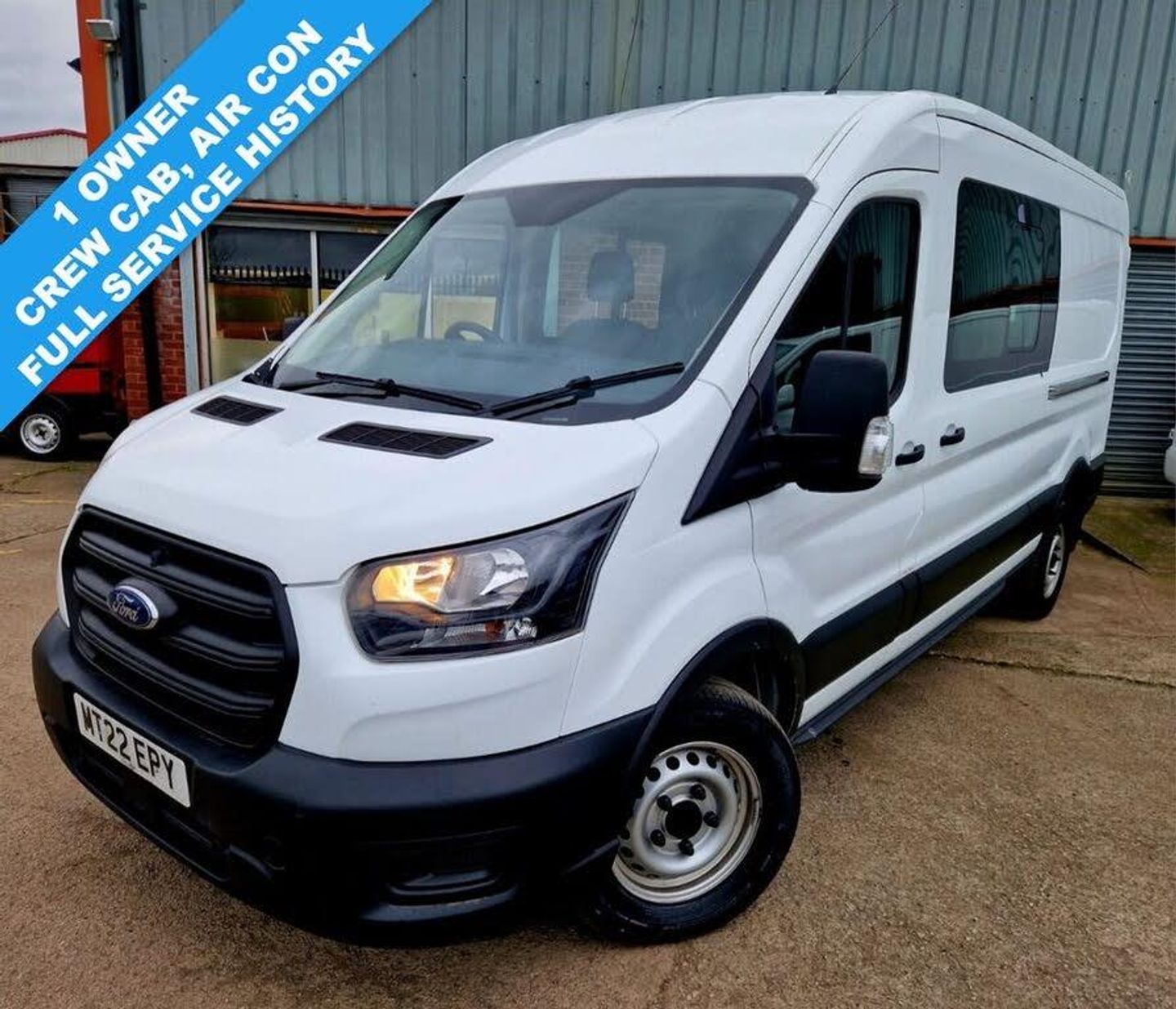 16in Steel Wheels, 4.2in Monochrome TFT Non-Touch Screen with New SYNC 4 System, Airbags - Driver, Alternator - Standard Duty 165Amp, Anti-Lock Braking System - ABS with Electronic Brake Force Distribution - EBD, Battery - Cold Start -20 Degree C, Black Dual Manual Signal Mirrors, Bottle Holder - Twin 2 litre Bottle Capacity - Facia-Mounted, Cargo Door Handle - Self Colour, Curve Control, Door Handles - Self Coloured, Door Mirror - Manual Adjust - Short Arm, Door Mirrors - Blind Spot Eliminator and Integrated Side Indicator, Door Mirrors - Manual Adjust, Doors - Unglazed Rear Doors - Hinged for 180 Degree Opening - Positive Stop At 90 Degree, EBA - Emergency Brake Assist, EPAS - Electric Power Assisted Steering, ESP and Hill Launch Assist, Electrically-Operated Front Windows with One-shot Up-down on Drivers Side, Emergency Brake Warning, Ford Easy Fuel Capless Refuelling System with Misfuel Inhibitor, Front Bumper - Self Colour, Front Grille - Self Colour, Gearshift Indicator Light, Halogen Headlights with Courtesy Delay, Headlights - Halogen Projector Containing Daytime Running LIghts, Headlights - Levelling Control, Headlights - Quad Beam, Headlights Courtesy Delay - 30 Seconds Duration, Headlining - Cab - Moulded, Heater - Positive Thermal Coefficient - PTC, High Mounted Stop Lamp, ISOFIX - Child Seat Attachments - 2x Second Row, Immobiliser - Safeguard Passive Anti-Theft System - PATS - Insurance-Approved Category 2 Immobiliser, Kerbside Side Load Door, LAC - Load Adaptive Control, Less Steel Spare Wheel, Load Compartment - DIN 75410 Compliant Tie-down Loops, Locks - Audio Mislock Feedback - Audible Signal if a Door is Ajar When Locking Activated, Locks - Auto Locking on Drive-Away - Doors Automatically Lock at 8 kmh or 5 mph, Locks - Auto Relocking - Doors Relock after 45 Seconds if no Door is Opened, Locks - Configurable Unlocking - 2-Stage Unlocking, Locks - Key Operated Bonnet Release, Locks - Power Door Deadlocks - Shielded with Strengthened Mountings, Mechanical Parking Brake, MyKey, Polymer Moulded Glazed Bulkhead, Power Point - 2 x 12V Located on Instrument Panel and in Stowage Bin, RSC - Roll Stability Control, Rear Axle Alt A, Rear Bumper - Self Colour with Integrated Step, Remote Central Locking with One Key Fob, Seatbelts - 3 Point Diagonal Inertia Reel - All Seats, Seats - Drivers 4-Way Adjustment with Armrest, Selectable Drive Mode, Side Windows - Second Row - Sliding, Single Rear Wheels, Steering Column - Rake and Reach Adjustment, Steering Wheel - 4 Spoke Polyurethane, Storage - Front Door Map Pockets, Storage - Underseat Stowage Compartment Under Dual Passenger Seat, Suspension - Front Independent MacPherson Struts -Variable Rate Coil Springs - Stabiliser Bar - Gas-Pressurised Shock Absorbers and Rear Leaf Springs, Tinted Glass, Trip Computer, Tyre Repair Kit, Vehicle Identification Number - VIN - Visible, Vehicle Maintenance Monitor, Waist Height Cargo Area Trim Boards, Water in Fuel Filter with Sensor, Wheel Covers - Half Caps, Wide Bodyside - Grey Moulding, Wipers - Front Variable-Intermittent with Electric Wash, Frozen White, Manual Air Conditioning, Spare Wheel - Steel