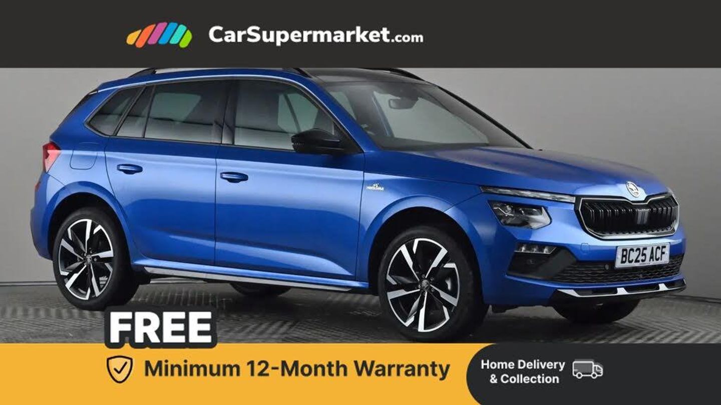 Advanced driver attention and drowsiness monitor,Bluetooth system,E-call,Front assist system,PAS,Rear parking sensors,Rear view camera,Service indicator,Speed limiter,Traffic sign recognition,Virtual cockpit with 10.25" display,Voice control system,Wireless smartlink,4 USB C ports,8 Speakers,9.2" Skoda navigation display,DAB Digital radio,Auto dimming rear view mirror,Automatic headlight control with coming home and leaving home feature,Black door mirrors,Black radiator grille,Black rear diffuser,Black roof spoiler,Body colour bumpers,Body colour door handles,Boot lettering in black,Extended tailgate glass,Fixed panoramic sunroof with black roof rails,Front and rear electric windows,Heated rear window,LED daytime running lights,LED high beam,LED low beam,LED third brake light,Light sensors,Monte carlo plaque,Privacy glass,Rear side wing doors,Rear wiper,Ticket holder inside windscreen,12V socket in luggage compartment,3 seat bench in 2nd row,Aluminium pedals,Ambient lighting in white/red,Art leather carbon decor inserts,Art leather carbon door inserts,Black roof lining,Cargo elements,Chrome inner door handles,Driver and passenger sun visors with vanity mirror,Dual zone climate control,Front and rear roof lights,Front centre armrest,Front head restraints,Glove compartment with illumination,Height adjustable driver seat,Height adjustable front passenger seat,Ice scraper,Inner circulation control with pollen filter,ISOFIX on front passenger seat,Isofix preparation for back seats,Leather gearknob and handbrake lever,Manual lumbar support for front seats,Monte Carlo cloth upholstery,Net package and top tether hooks in boot space,Net under rear shelf,Pocket on the back of both front seats include mobile phone pockets,Rake/reach adjustable steering wheel,Reading lights,Rear centre armrests,Red hotstamping,Single front passenger seat,Sports seats,Third rear headrest,Top tether for front passenger seat,Umbrella in driver's door,Light and view plus package - Kamiq,3x3 point rear seatbelts,Airbags - driver and front passenger,Disc brakes,ESP,Extended and predictive pedestrian/cyclist protection,Front passenger airbag deactivation switch,Front side airbags with curtain airbags,Hill hold control,Manual leather parking brake,Manual rear child locks,One tone horn,Seatbelt reminder for driver an co-driver,Traction control,Tyre pressure monitor,Anti-theft alarm system with interior monitoring, backup horn, towing protection and remote central locking with SAFE system,Anti-theft wheel bolts,Electronic engine immobilizer,18" Ursa black diamond cut alloy wheels