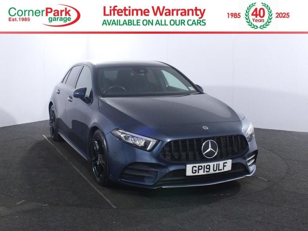 2 Owners. Last serviced at 65,486 miles in January 2026. Sporty, stylish, and built to impress, this 2019 Mercedes Benz A Class 2.0 A200d AMG Line (Premium) blends dynamic performance with luxury craftsmanship. Finished in Denim Blue and paired with 18?inch AMG?5?twin?spoke alloy wheels, this premium hatchback strikes a perfect balance between elegance and athleticism. The signature Diamond/Radiator/Grille, AMG-body styling, and sleek LED lighting give the A-Class a distinctive, high-end presence that stands out on any road. Step inside and experience a cabin crafted with precision and technology at its heart. The Artico-leather and Dynamic microfibre interior with red-contrast stitching perfectly complements the AMG-sports seats and flat-bottomed leather steering wheel, creating a true driver-focused feel. The MBUX Multimedia System with "Hey, Mercedes" voice control, hard-disk navigation, and digital displays provides an intelligent driving experience, while the THERMOTRONIC dual-zone climate control, ambient lighting, and Privacy-Glass ensure comfort and refinement throughout. Powered by a responsive 2.0 litre A200d diesel engine, this AMG Line A Class delivers smooth power through an 8 speed GDCT automatic gearbox, balancing performance with impressive WLTP tested fuel efficiency. The Dynamic Select driving modes allow you to tailor the drive from Eco to Sport, while advanced safety features such as Active Brake Assist, Lane Keeping Assist, and a Reversing Camera provide reassurance on every journey. Combining refinement, technology, and confidence inspiring handling, this A Class is the ideal premium hatchback for drivers who demand more from every mile. All our cars are put through strict quality checks, and this one passed them all. For added peace of mind, we will ensure this will have a minimum of 6 months MOT where applicable. Our quality standards extend to your vehicle ownership. Finance is quick and easy, with a multitude of finance options, we can provide a deal tailored to suit you. Delivery available, all our cars are available online or in store, and any car can be delivered straight to your front door, or to your nearest branch. This car has been price-checked against the competition, and will be the cheapest available, or we will refund the difference! See website for terms. Search Corner Park to find us. We are based in the heart of South Wales, Swansea (M4 J42). Pop in or give us a call today!