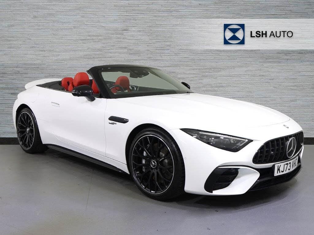 This 2024 Mercedes Benz SL43 AMG (Premium Plus) is a manufacturer approved vehicle with a full dealership service history, most recently serviced at 9050 miles on 09 March 2026, and benefits from a 24 month warranty and MOT valid until February 2027. This striking SL43 AMG features a powerful 2.0 litre petrol hybrid engine, meeting Euro 6 emission standards. Inside, you will find luxurious Red Pepper Black Nappa leather upholstery and a heated steering wheel for added comfort.The SL43 AMG is equipped with a V8 Exterior Styling Package, enhancing its already impressive presence. For your convenience and safety, it includes the Driving Assistance Package, which incorporates Blind Spot Assistance and Adaptive Cruise Control. Furthermore, the vehicle offers a Wireless Charging System for mobile devices, ensuring you stay connected on the go. These features collectively demonstrate a superior level of specification and refinement compared to other vehicles in its class.-V8 STYLING PACKAGE-Mercedes-Benz SL Class SL 43 Premium Plus 2dr Auto-LSH Auto UK Ltd - An LSH Group Company. The Worlds Largest Retailer of Mercedes-Benz Passenger Cars