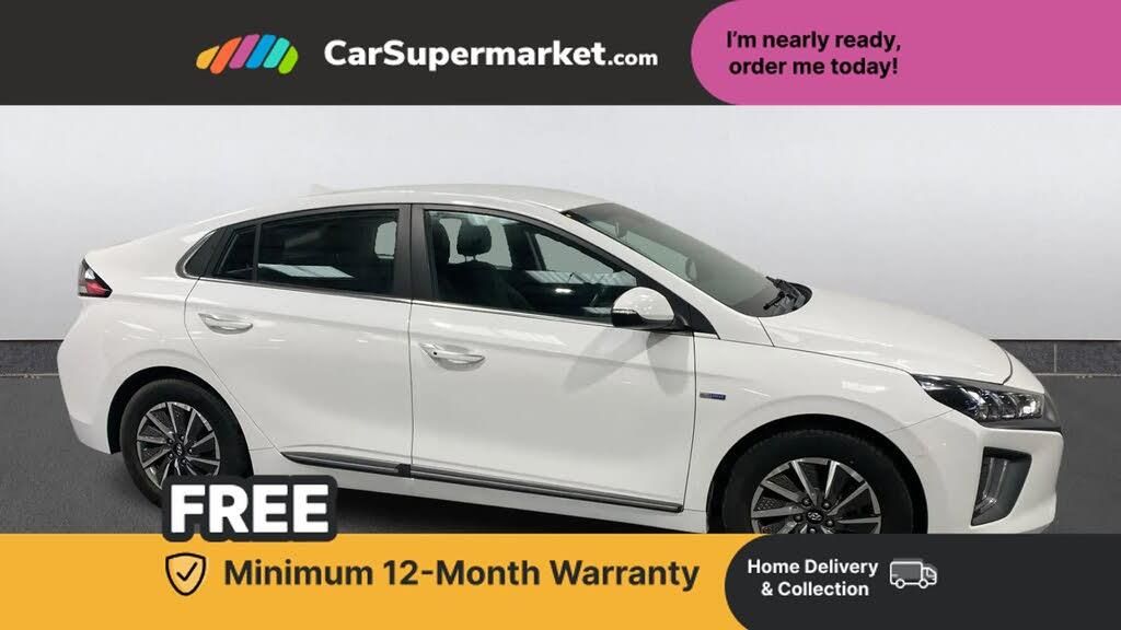 10.25" touchscreen satellite navigation includes traffic messaging channel, mapcare, live services and bluelink,Adaptive cruise control with Stop and Go,Apple car play/Android Auto,Bluetooth system,Driver attention alert system,E-call,Eco driving assistant system (ECO DAS),Electric power steering with variable drive modes,Gear lever drive mode selector,Lane departure warning system with lane keep assist - LKAS,Parking system with rear camera and guidance system,Rear parking sensor,Rear view monitor,Roadside assistance,Supervision cluster with 7" high resolution TFT LCD,Voice recognition,Windscreen washer fluid sensor and warning indicator,Wireless phone charging pad,7 pin charging cable,7.2 kw On board Charger,Emergency 3 pin connector charging cable (ICCB),DAB Digital radio,Infinity sound system includes 1 centre, 2 tweeters, 2 front, 2 rear and 1 ext amp,Radio data system,Steering wheel audio, phone and cruise controls,USB and aux connection in front,Active air flap radiator grille,Auto dimming rear view mirror,Automatic headlights with dusk sensor,Body colour bumpers,Body colour door handles with chrome inserts,Body colour door mirrors,Bodyside mouldings,Chrome door scuff with ioniq logo,Chrome finish window surround,Door mirror puddle lights,Electric adjustable door mirrors,Electric front windows - anti trap + one touch,Electric heated door mirrors,Grey radiator grille,Heated rear windscreen,High beam assist,LED daytime running lights,LED Headlights,LED indicators in door mirrors,LED rear fog light,Positioning Lights - LED,Power folding door mirrors,Rear electric windows,Rear LED lights,Rear roof spoiler with integrated LED brake light,Solar glass with windscreen shade band,Tinted windows,Two tone rear bumper,12V power outlets,60/40 split folding rear seat,Centre console storage,Centre interior light,Chrome interior door handles,Cloth upholstery,Driver seat height adjust,Driver's electric adjustable lumbar support,Driver/passenger sunvisors with illuminated vanity mirrors,Dual zone climate control,Front centre armrest with storage compartment,Front cupholder,Front head restraints with vertical and horizontal adjustment,Front seat and rear pockets,Heated front seats,Heated steering wheel,Illuminated luggage compartment,Interior mood lighting,Leather wrapped steering wheel,Luggage net,Manual height adjustable front passenger seat,Map and reading lights,Paddle shifter,Rear centre console with air vents,Sunglasses holder,USB - driver arm rest (charging only),Vertical adjustment rear head restraints,3x3 point rear seatbelts,Airbags - front, front side, curtain and drivers knee airbags,Anti-lock brake system (ABS),Autonomous emergency braking,Electric parking brake,Electronic stability control,Front passenger airbag deactivation switch,Hill start assist control (HAC),Regenerative braking system,Traction control,Tyre pressure monitoring system with individual tyre pressure display,Deadlocks,Immobiliser,Keyless smart entry with push button start,Remote central locking,16" alloy wheels,Tyre repair kit,Polar White