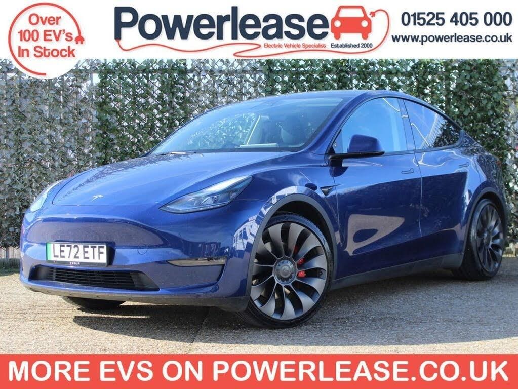 **94.5% BATTERY HEALTH** This 2023 Tesla Model Y Performance is a superb example, having had only one owner since new. As an all electric vehicle, it offers a smooth and quiet driving experience. This Performance variant boasts a four wheel drive drivetrain, powered by an 85 kWh battery that provides a maximum range of 319 miles when new. Charging at home on a 7kW charger will take approximately 12 hours for a full charge, while rapid public charging can take you from empty to 80% in as little as 25 minutes. The highlights of this Model Y Performance are truly impressive, setting it apart from other vehicles. Its acceleration is a standout feature, achieving 0 to 60 miles per hour in a remarkable 3.5 seconds, demonstrating its dynamic capabilities. Furthermore, the impressive battery maximum range of 319 miles offers excellent usability for both daily commutes and longer journeys, making this electric SUV a compelling choice. BATTERY HEALTH CHECK AVAILABLE ON REQUEST | SPECIALIST EV EXTENDED WARRANTIES | ALL VEHICLES FULLY INSPECTED | ALL VEHICLES SERVICED & MOT'ED | HPI CHECKED AND CERTIFIED | FINANCE AVAILABLE | PART EXCHANGE AVAILABLE | CLICK AND COLLECT AVAILABLE | HOME DELIVERY AVAILABLE | BUY ONLINE VIA OUR WEBSITE WWW.POWERLEASE.CO.UK | IN BUSINESS FOR OVER 20 YEARS EST 2000 |