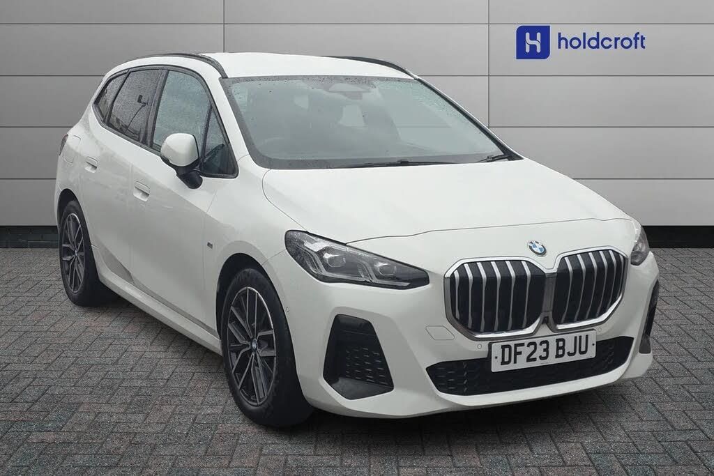 Active Guard incl speed limiting and lane departure functions with auto steering, and front collision warning with brake intervention,Attentiveness assist,Automatic powered tailgate,Automatic start/stop function,BMW Head up display,BMW Online services,BMW operating system 9 - BMW remote services, Smartphone integration with Apple CarPlay and Android auto,BMW Teleservices,Brake pad wear indicator in front and rear,Condition based service,ConnectedDrive Services,Drive off assistant,Flat air vents on instrument panel in high gloss black, adjustable slats with elements in pearl chrome,iDrive controller,Instrument cluster with speedometer with miles per hour read out, tachometer and fuel gauge,Language version English,On board computer - average speed+fuel consumption, service interval, clock/date, odometer/trip meter, outside temperature display and ice warning,Servotronic variable electric power steering (EPS),Widescreen display,Drive performance control with ECO PRO comfort + sport mode,Gear selector switch with toggle operation,M Adaptive suspension,Petrol Particulate Filter,Steptronic transmission with double clutch and gear shift paddles,2x USB Type C ports in front centre console for charging and data transfer,2x USB Type C ports in rear centre console for charging,DAB Digital radio,Welcome sound upon opening of the front driver or passenger door,Air inlet middle part on front apron in lines specific design with trim strip in satinised aluminium,Automatic headlights,Black rear bumper trim strip,BMW emblem, engine compartment lid and tailgate,Body colour roof mouldings,Body coloured door mirror caps,Contoured rear roof spoiler in vehicle colour with side aeroblades in black high-gloss,Driver side exterior mirror lighting with BMW logo projection,Dynamic brake lights,Electric adjustable heated door mirrors,Electric windows - front and rear, with open/close fingertip control, anti-trap facility and comfort closing,Folding door handles integrated flush with surface,Front and rear windscreen wipers with heated front washer nozzles,Front bumper cover with independent design in body colour with inserts in black high gloss,Front bumper design elements in satinised aluminium,Front door exit lights,Front door sill finishers aluminium inserts with M inscription,Front entry sills with aluminium inserts + BMW inscription,Front oramental grille with radiator grille bars in satinised aluminium,Heated rear window,Hidden exhaust pipe,High gloss shadow line,Home light,Key with M identification,LED Daytime running lights and parking lights with turn indicators,LED number plate light,LED third brake light in rear spoiler,M identification on sides,Manual headlight range control,Model inscription on right tailgate,Rain sensor,Rear bumper cover with independent design in body colour with inserts in black high gloss,Rear side wing doors,Shark fin antenna,Side sill covers with independent design in Body colour,Trailer stabilisation logic,Trims on front and rear bumper covers colour-coordinated with side window graphic,Visible VIN plate,Welcome lighting,Window washer nozzle for rear view camera,12V socket in right side trim panel,2 bag hooks in luggage compartment,2 front reading lights,2 open cup holders in front centre console,2x 12V power socket in luggage compartment and front centre console,3 seat bench in 2nd row,40:20:40 split folding rear seat backrests,Ambient lighting front and rear,Automatic two zone climate control air conditioning,Bottle trays in all doors,Child seat ISOFIX attachment for two outer rear seats and front passenger seat with anchorage points,Driver and front passenger sports seats,Embellishers on steering wheel spokes in pearl chrome,Four grab handles integrated in roof lining,Front and rear door pockets,Front and rear footwell lighting,Front and rear side armrest integrated into door trim,Front centre console storage compartment,Front head restraints,Glovebox with light,Heated front seats,Height adjustable 3 rear head restraints,Interior door handle recess light on all doors,Luggage compartment lighting,M Anthracite headlining,M specific floor mats,M sport leather steering wheel,Map pockets,Mechanical rear seats with fore/aft adjustment,Middle centre console storage compartment,Multi-function controls for steering wheel,One piece parcel shelf opens together with tailgate and removable,Rear cloth hooks,Single front passenger seat,Stainless steel pedals,Steering wheel column manual adjustment,Storage compartment lighting in centre console and storage tray in centre stack,Storage compartment net in left side trim panel,Storage compartment with folding cover under centre console armrest cushion,Sunvisors with illuminated vanity mirrors,Technology plus pack - 2 Series Active Tourer,Technology plus pack with Head up display - 2 Series Active Tourer,3 point seatbelts on all seats, front pyrotechnic belt tensioners, stopper and belt force limiters, rear coded belt buckles,Airbag - Front driver and passenger