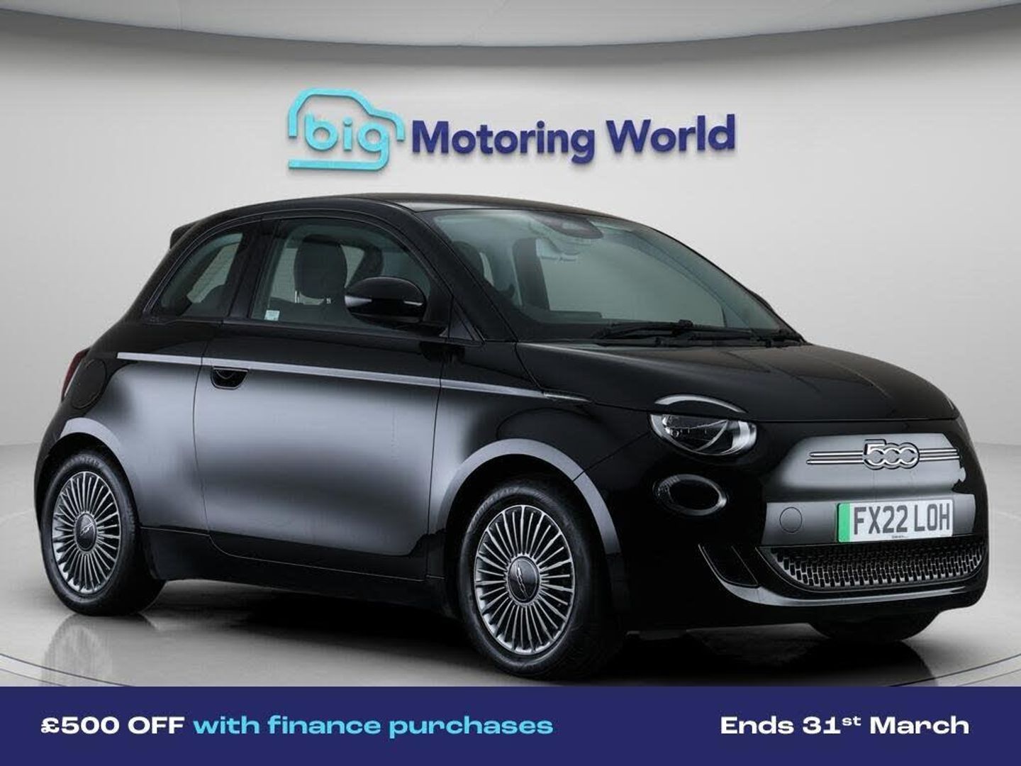 £500 towards your finance depo-Our Fiat 500e comes with optional extras worth £450. Specification includes a range of fantastic features including £500 towards your finance deposit, Apple CarPlay, Internet, Bluetooth, Parking Sensors, Cruise Control, Climate Control, Keyless Go, DAB Radio , Touch Screen Control Specification information is supplied by CAPHPI and may vary to the actual car. This data does not form any part of a buying contact. Please check specification prior to purchase in-store. The MOT is valid until February 2027, visit bigmotoringworld.co.uk for more photos, a 360 tour, service history and a free HPI report.Were BIG on peace of mind and this Black Fiat 500e has completed our comprehensive 200 point inspection and passed all checks. Its ready for you to drive away with immediate collection in-store. We include a 90-day warranty as standard plus an option to extend for up to 3 years.Reserve this car exclusively for you, safely and securely at bigmotoringworld.co.uk, with a fully refundable £99 deposit. Test drive before you buy, with no commitment, no hassle and a completely haggle free experience. Still searching and want to see thousands more cars? We are BIG on choice with over 8000 cars to choose from.Visit our award winning web site bigmotoringworld.co.uk.Were Big Motoring World and were BIG on what matters to you.