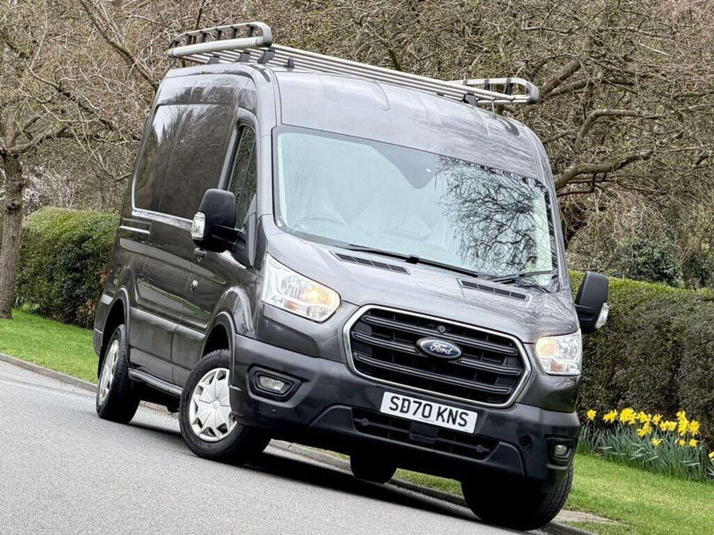 15in Steel Wheels, 2nd Remote Key, Airbags - Driver, Anti-Lock Braking System - ABS with Electronic Brake Force Distribution - EBD, Assist Handle - Located on B-pillar, Auto Lights and Wipers, Battery - Cold Start -20 Degree C, Bluetooth, Bodyside Mouldings - Wide - Self Colour, Bottle Holder - Twin 2 litre Bottle Capacity - Facia-Mounted, Bulkhead - Full Steel, Cargo Door Handle - Self Colour, Courtesy Light - Header-Mounted - Front Maps Lights with Theatre Dimming, Cruise Control with Adjustable Speed Limiter, Curve Control, Door Handles - Self Coloured, Door Mirrors - Blind Spot Eliminator and Integrated Side Indicator, Doors - Unglazed Rear Doors - Hinged for 180 Degree Opening - Positive Stop At 90 Degree, Dual-Circuit Front and Rear Discs with Self-Adjusting Servo-Assistance and ABS, EBA - Emergency Brake Assist, EPAS - Electric Power Assisted Steering, ESC - Electronic Stability Control, Easy Clean Load Floor, Electric Windows - Front, Emergency Brake Warning, Floor Covering - Cab Easy-Clean Rubber, Fold Out Front Passenger Seat Table, Ford Easy-Fuel Capless Refuelling System, Ford SYNC with 8in TFT Screen, Front - Independent MacPherson Struts - Coil Springs - Stabiliser Bar and Gas-Pressurised Shock Absorbers - Rear - Leaf Springs and Gas-Pressurised Shock Absorbers, Front Bumper - Self Colour, Front Fog Lights, Front Grille - Self Colour with Chrome Surroud, Front Passengers Seat - Dual Fixed with Split Lift Up Cushion for Stowage and Fold Out Table, Gearshift Indicator Light, Glovebox - with Lockable Lid and A4 File Storage Capability, Headlights - Halogen Projector Containing LED Daytime Running Lights and Static Cornering, Headlights - Levelling Control, Headlights Courtesy Delay - 30 Seconds Duration, Headlining - Cab - Moulded, Heated Front Windscreen, Heater - Positive Thermal Coefficient - PTC, Heavy Duty Alternator, Hill Start Assist, ICE Pack 21, Immobiliser - Safeguard Passive Anti-Theft System - PATS - Insurance-Approved Category 2 Immobiliser, LAC - Load Adaptive Control, Less Steel Spare Wheel, Loadspace Compartment Light, Locks - Audio Mislock Feedback - Audible Signal if a Door is Ajar When Locking Activated, Locks - Auto Locking on Drive-Away - Doors Automatically Lock at 8 kmh or 5 mph, Locks - Auto Relocking - Doors Relock after 45 Seconds if no Door is Opened, Locks - Configurable Unlocking - 2-Stage Unlocking, Locks - Key Operated Bonnet Release, Locks - Power Door Deadlocks - Shielded with Strengthened Mountings, Mudflaps - Rear, MyKey, Overhead Storage Console, Parking Aid - Front and Rear with Front Fog Lamps, Passenger Side Sliding Load Door - Solid, Power Fold Door Mirrors - Heated, Power Point - 2 x 12V Located on Instrument Panel and in Stowage Bin, RSC - Roll Stability Control, Radio with Remote Stalks, Rear Bumper - Self Colour with Integrated Step, Remote Central Door Locking with Deadlocks, Remote Central Locking with Two Key Fobs, Seatbelts - 3 Point Diagonal Inertia Reel - All Seats, Seats - Drivers 4-Way Adjustment with Armrest, Selectable Drive Mode, Shoulder Height Cargo Area Trim Boards, Side Wind Mitigation, Steering Column - Rake and Reach Adjustment, Steering Wheel - 4 Spoke Leather Trimmed, Storage - Front Door Map Pockets, Storage - Underseat Stowage Compartment Under Dual Passenger Seat, Tinted Glass, Trip Computer, Tyre Inflator Kit, Vehicle Identification Number - VIN - Visible, Vehicle Maintenance Monitor, Water in Fuel Filter with Sensor, Wheel Covers - Full