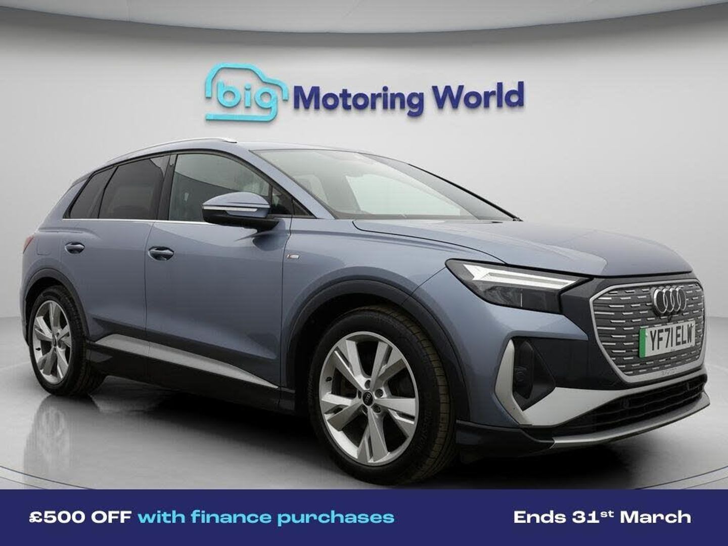 £500 towards your finance depo-Our Audi Q4 e-tron is finished in Blue. Specification includes a range of fantastic features including £500 towards your finance deposit, Part Leather Seats, Apple CarPlay, Lane Assist, S Line Body Styling, Android Auto, Satellite Navigation, Privacy Glass, Heated Seats, Bluetooth Specification information is supplied by CAPHPI and may vary to the actual car. This data does not form any part of a buying contact. Please check specification prior to purchase in-store. The MOT is valid until December 2026, visit bigmotoringworld.co.uk for more photos, a 360 tour, service history and a free HPI report.Were BIG on peace of mind and this Blue Audi Q4 e-tron has completed our comprehensive 200 point inspection and passed all checks. Its ready for you to drive away with immediate collection in-store. We include a 90-day warranty as standard plus an option to extend for up to 3 years.Reserve this car exclusively for you, safely and securely at bigmotoringworld.co.uk, with a fully refundable £99 deposit. Test drive before you buy, with no commitment, no hassle and a completely haggle free experience. Still searching and want to see thousands more cars? We are BIG on choice with over 8000 cars to choose from.Visit our award winning web site bigmotoringworld.co.uk.Were Big Motoring World and were BIG on what matters to you.