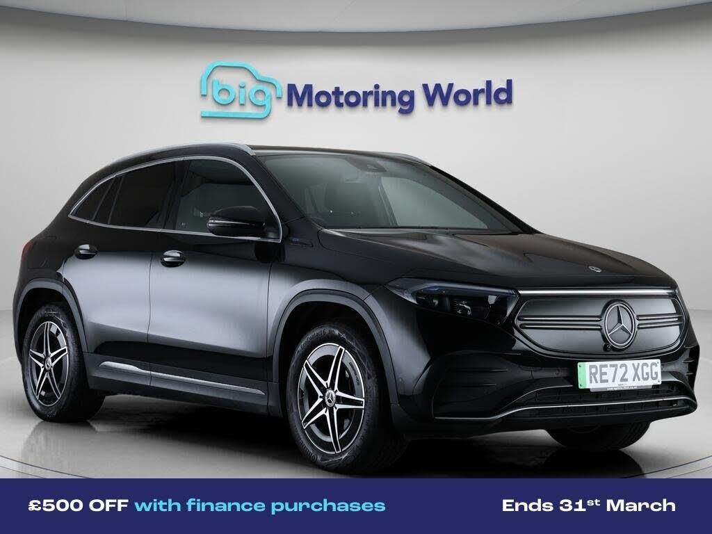 £500 towards your finance depo-Our Mercedes-Benz EQA is finished in Black. Specification includes a range of fantastic features including £500 towards your finance deposit, Comfort Pack, All Wheel Drive, 18'' alloy wheels, Air Suspension, AMG body styling, Parking Pack, Satellite Navigation, Privacy Glass, Heated Seats Specification information is supplied by CAPHPI and may vary to the actual car. This data does not form any part of a buying contact. Please check specification prior to purchase in-store. The MOT is valid until October 2026, visit bigmotoringworld.co.uk for more photos, a 360 tour, service history and a free HPI report.Were BIG on peace of mind and this Black Mercedes-Benz EQA has completed our comprehensive 200 point inspection and passed all checks. Its ready for you to drive away with immediate collection in-store. We include a 90-day warranty as standard plus an option to extend for up to 3 years.Reserve this car exclusively for you, safely and securely at bigmotoringworld.co.uk, with a fully refundable £99 deposit. Test drive before you buy, with no commitment, no hassle and a completely haggle free experience. Still searching and want to see thousands more cars? We are BIG on choice with over 8000 cars to choose from.Visit our award winning web site bigmotoringworld.co.uk.Were Big Motoring World and were BIG on what matters to you.