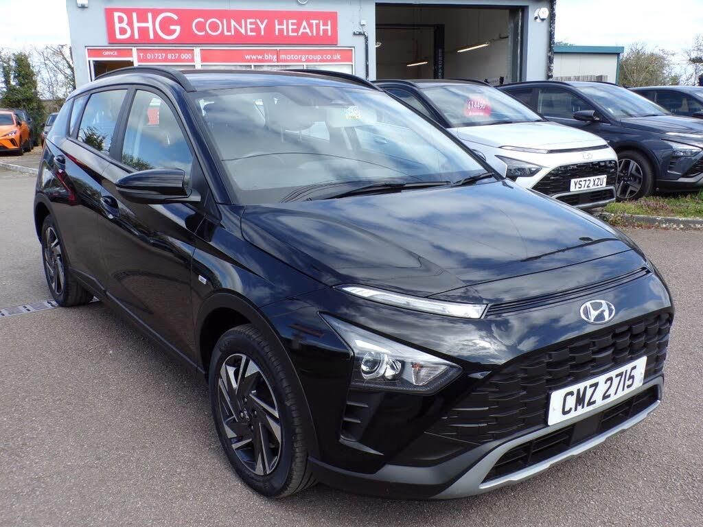Black Cloth interior.This 2023 Hyundai BAYON T-GDi SE Connect is a superb example WITH THE BALANCE OF HYUNDAI'S 5 YEAR WARRANTY, having had only one owner from new and boasting a full dealership service history. This stylish compact SUV features a 1.0L Petrol Hybrid engine, meeting Euro 6 emissions standards. It comes equipped with practical features such as automatic headlights that activate with a dusk sensor, rear parking sensors, and a rear view parking camera to assist with manoeuvring. Inside, you'll find Bluetooth connectivity with voice recognition and Apple CarPlay, ensuring seamless integration with your smartphone., , With an impressive fuel economy of 53 mpg, this BAYON offers excellent efficiency, and its low CO2 emissions further highlight its environmentally conscious design, making it a more economical choice compared to similar vehicles. The SE Connect trim level ensures a comfortable and connected driving experience, perfect for both city commutes and longer journeys.....PLEASE CALL TO VIEW OR RESERVE AS CARS ARE KEPT IN 2 LOCATIONS . . . . FOR YOUR PEACE OF MIND . . . . ALL CARS ARE HEALTH CHECKED . . . . SERVICED IF DUE . . . . NEW MOT IF LESS THAN 6 MONTHS LEFT.....HPI CHECKED . . . . VALETED . . . . PART EXCHANGE WELCOME . . . . COMPETITIVE FINANCE RATES AVAILABLE (subject to status) . . . . OVER 100 MORE VEHICLES ON OUR WEBSITE, www.bhgmotorgroup.co.uk, Full dealership history, Excellent bodywork, Black Cloth interior - Excellent Condition, 5 seats, Metallic Black, 1