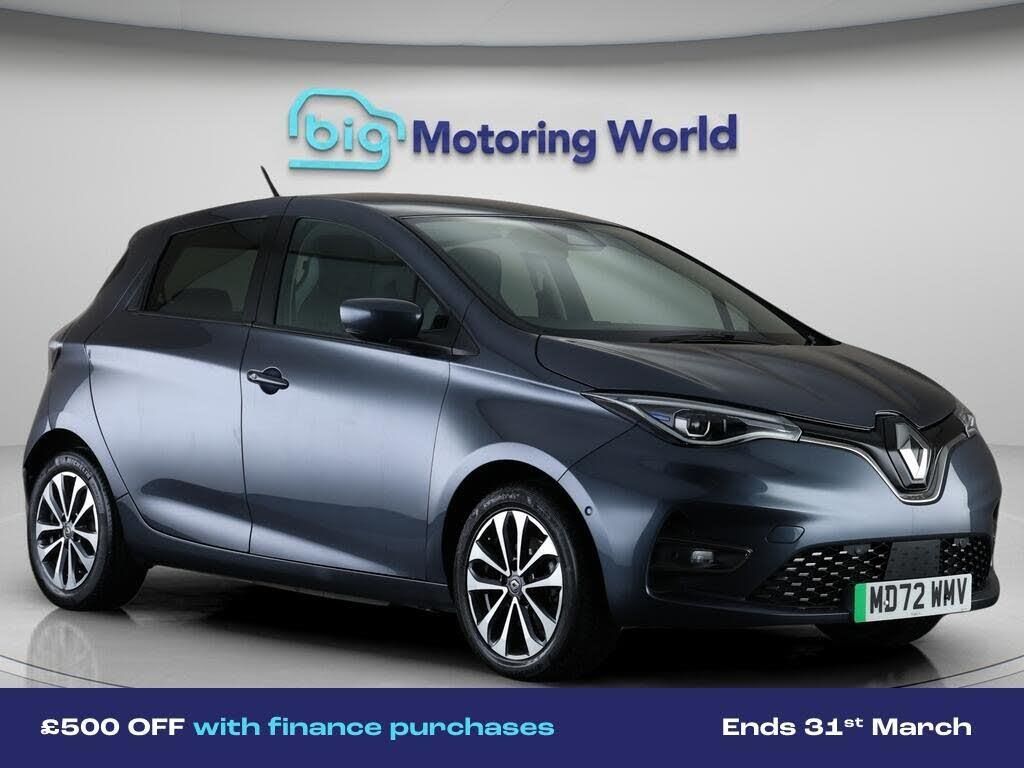 £500 towards your finance depo-Our Renault Zoe comes with optional extras worth £1,100. Specification includes a range of fantastic features including £500 towards your finance deposit, Leather Seats, Apple CarPlay, Lane Assist, Android Auto, Satellite Navigation, Privacy Glass, Heated Seats, Rear View Camera, Heated Steering Wheel Specification information is supplied by CAPHPI and may vary to the actual car. This data does not form any part of a buying contact. Please check specification prior to purchase in-store. The MOT is valid until December 2026, visit bigmotoringworld.co.uk for more photos, a 360 tour, service history and a free HPI report.Were BIG on peace of mind and this Grey Renault Zoe has completed our comprehensive 200 point inspection and passed all checks. Its ready for you to drive away with immediate collection in-store. We include a 90-day warranty as standard plus an option to extend for up to 3 years.Reserve this car exclusively for you, safely and securely at bigmotoringworld.co.uk, with a fully refundable £99 deposit. Test drive before you buy, with no commitment, no hassle and a completely haggle free experience. Still searching and want to see thousands more cars? We are BIG on choice with over 8000 cars to choose from.Visit our award winning web site bigmotoringworld.co.uk.Were Big Motoring World and were BIG on what matters to you.