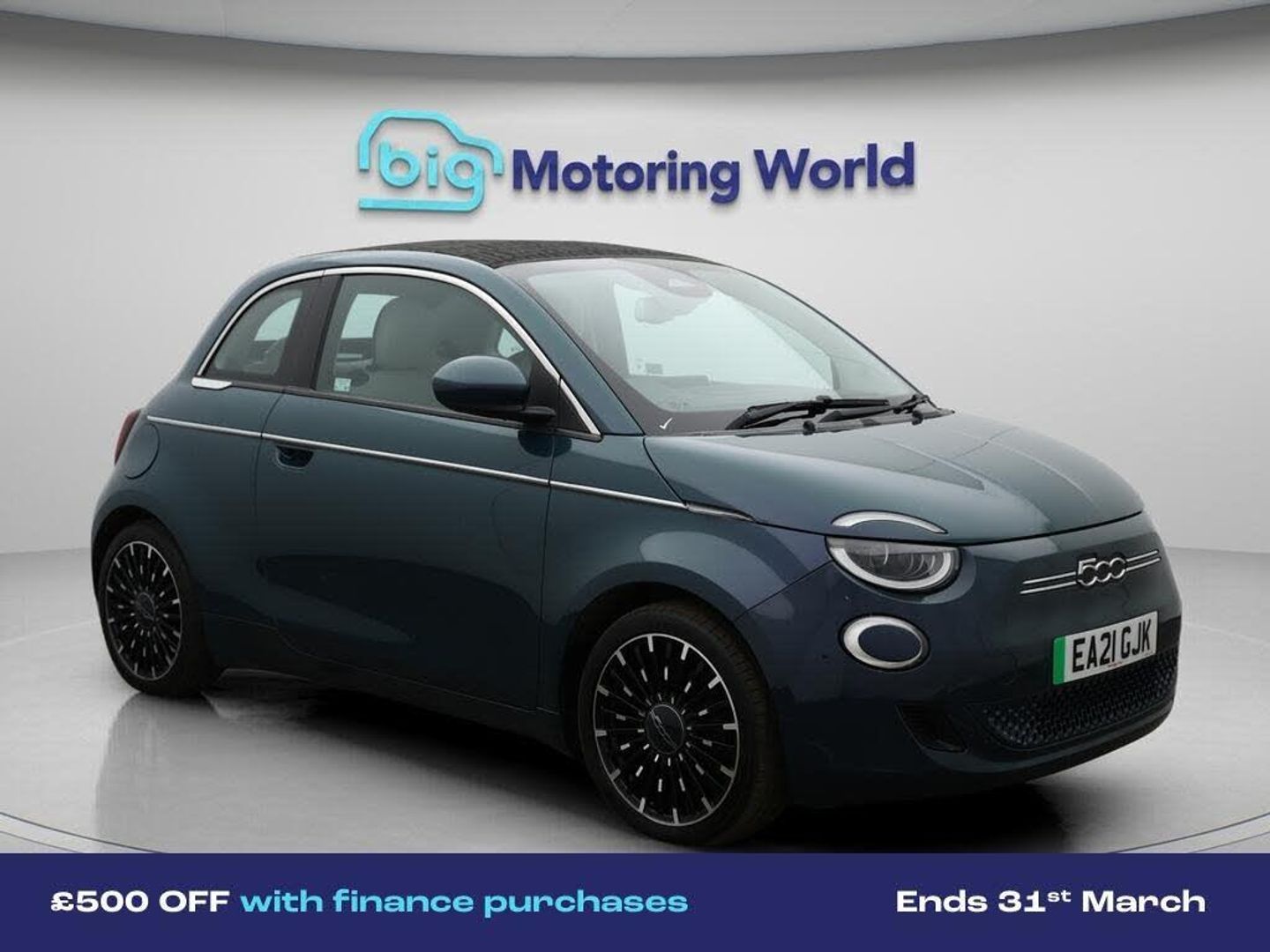 £500 towards your finance depo-Our Fiat 500e C comes with optional extras worth £2,025. Specification includes a range of fantastic features including £500 towards your finance deposit, 17'' Alloy Wheels, Leather Seats, Apple CarPlay, Heated Seats, Rear View Camera, Internet, Bluetooth, Blind Spot Assist, Parking Sensors Specification information is supplied by CAPHPI and may vary to the actual car. This data does not form any part of a buying contact. Please check specification prior to purchase in-store. The MOT is valid until February 2027, visit bigmotoringworld.co.uk for more photos, a 360 tour, service history and a free HPI report.Were BIG on peace of mind and this Green Fiat 500e C has completed our comprehensive 200 point inspection and passed all checks. Its ready for you to drive away with immediate collection in-store. We include a 90-day warranty as standard plus an option to extend for up to 3 years.Reserve this car exclusively for you, safely and securely at bigmotoringworld.co.uk, with a fully refundable £99 deposit. Test drive before you buy, with no commitment, no hassle and a completely haggle free experience. Still searching and want to see thousands more cars? We are BIG on choice with over 8000 cars to choose from.Visit our award winning web site bigmotoringworld.co.uk.Were Big Motoring World and were BIG on what matters to you.