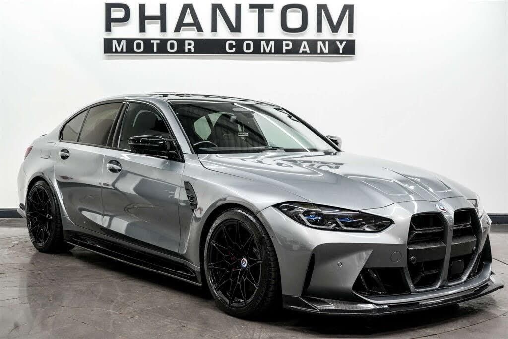 STRICT APPOINTMENT ONLY, 2025 AUTOTRADER HIGHLY RATED AWARD WINNER, LOW RATE FINANCE. Nationwide delivery available. Finished in the upgraded Skyscraper Grey we have a monstrous BMW M3 Competition XDrive. This vehicle comes with //// 5 years guarantee with lifetime MOTs available. As you can see, our M3 comes with an astounding specification, coming with various features such as; Stage 2 tune to 602BHP Carried out by Tom Wrigley Performance, Carbon fibre exterior package, Carbon fibre roof, Carbon fibre interior package, BMW M 50 Year Badges, Comfort Pack, Drive Recorder, Full Merino Leather - Black, Parking Assistant Plus, Steering Wheel - Heated, Technology Plus Pack, Visibility Pack, Air Conditioning - Automatic with Three-Zone, Dynamic Stability Control Plus, Connected Package Professional, Electronic Differential Lock, Enhanced Bluetooth and Wireless Charging, Harman Kardon Surround Audio Sound System, Head-Up Display, M Adaptive Suspension, M Compound Brakes, M Drive Professional, M Seat Belts, M Sport Differential, M Sport Seats, Smartphone Integration, Wireless Charging Tray, Privacy glass. The BMW M3 Competition is an animal that certainly needs no introduction, it's a saloon that sits in a bracket of its own. With Carbon features elevating the already incredible aesthetics, this BMW holds a wealth of road presence no matter when or where it is driven. This vehicle is heard before it is seen, with the terrorising exhaust system and cleverly crafted 3.0L engine, this M4 has a staggering amount of power.