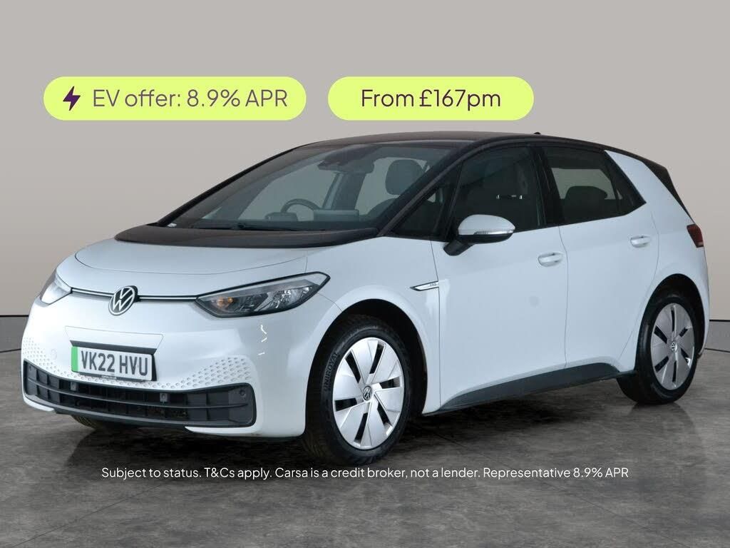 Experience the future of driving with this sleek white Volkswagen ID.3 hatchback. Equipped with the sought-after Assistance Pack and Comfort Pack, plus Adaptive Cruise Control and Blind Spot Assist for extra peace of mind. Enjoy the clarity of LED headlights and easily navigate tight spots with front and rear parking sensors. Stay connected with Bluetooth, and take advantage of the included charging lead for convenience. This ID.3 brings innovative technology and effortless style together for your everyday journeys. 2 services recorded, last serviced on 26/02/2026 at 42,512 miles. MOT to 30/03/2026. Visit our website for service history, online valuation, full vehicle specification plus multiple images. This vehicle is VAT qualifying. Any feature/option specified here is from 3rd party data. We cannot guarantee the accuracy of any specification supplied by a 3rd party. We recommend that you physically check the specification of the vehicle on site prior to purchase. This information does not form part of the buying contract. Terms & Conditions apply. We have over 2,000 cars available from our 10 national branches, check our website to see all our stock. Our Trustpilot rating is 4.4/5 with over 9,000 reviews.