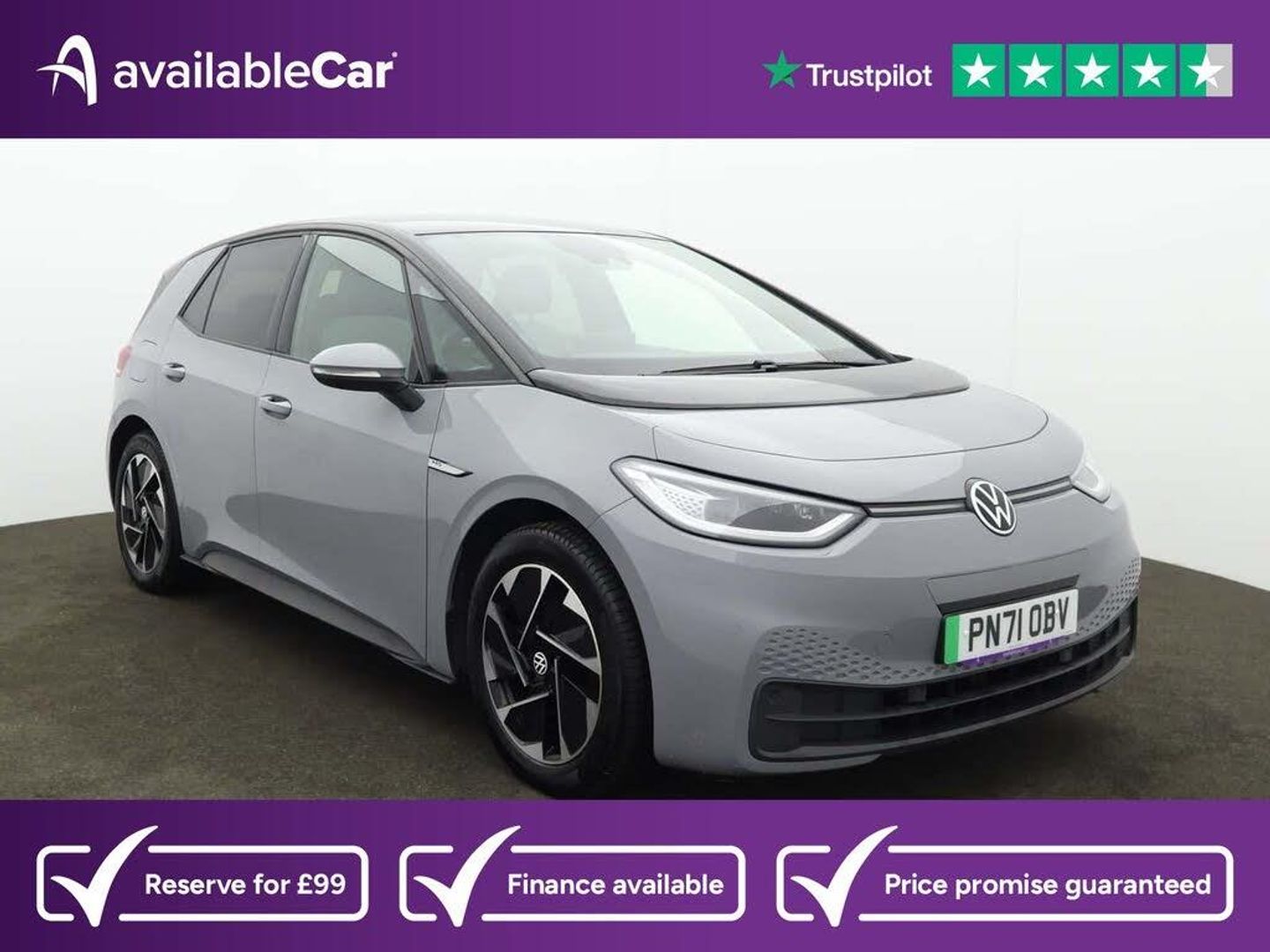 10in Infotainment System,18in Steel Wheels - Aero,ABS - Anti-Lock Braking System,Adaptive Cruise Control ACC including Front Assist - Radar Sensor Controlled Distance - Monitoring System - City Emergency Braking System - Cruise Control and Speed Limiter,Airbag - Front Centre,Airbags - Curtain Front,Airbags - Driver,Airbags - Front Side,Airbags - Passenger,Armrest Integrated into Front Seats,Assistance Pack,Black Roof,Body Coloured Bumpers - Door Handles and Door Mirrors with Integrated Indicators,Car2X Technology,Comfort Package Plus,DAB Digital Radio,Design Package Plus,Digital Dashboard,Driver Alert System,Electric Windows - Front and Rear,Electronic Parking Brake with Auto Hold Function,Exterior E-Sound,Free WeConnect Start for First 3 Years,Heated Rear Window,ID Light,Infotainment Package,Interior Alarm,Interior Ambient Lighting - 10 Colours,Lane Assist,Mode 3 - 32-AMP - 7.2kW Charging Cable for Charging at Public Charge Points,NCAP Pack - Forward Collision Warning - Extended and Proactive Pedestrian Protection,Natural Voice Control,Parking Sensors - Front and Rear,Power Assisted Steering - Speed Sensitive,Remote Tailgate Unlocking,Security and Service - SOS Buttons,Special WeCharge Conditions for ID 3 Customers within First 3 Years,Tool Kit with Tyre Mobility Kit,We Connect ID App,Winter Driving Mode,Wireless App Connect