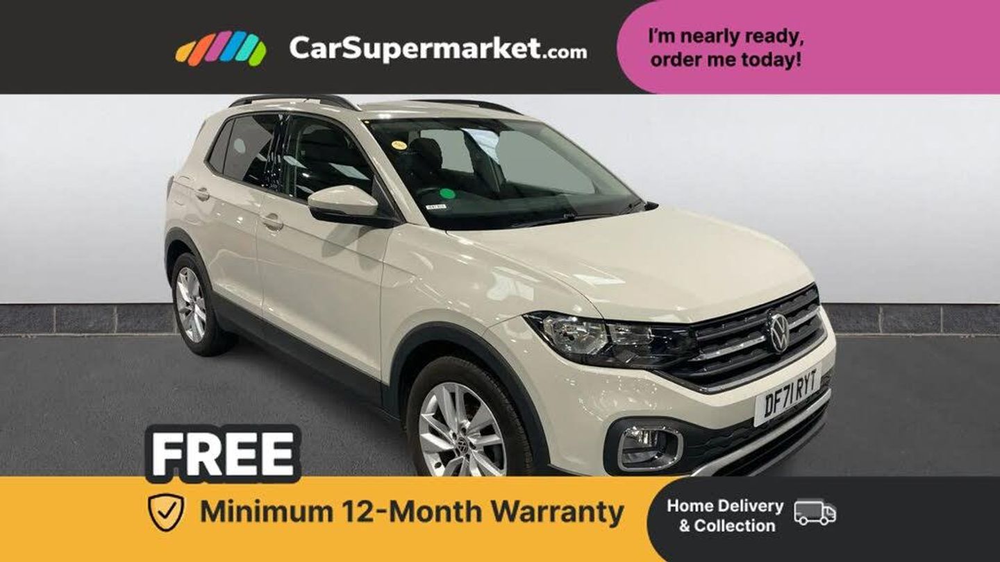 'Lights On' Reminder warning buzzer,Adaptive cruise control including front assist, forward collision warning, autonomous emergency braking, speed limiter,Blind spot monitoring,Bluetooth telephone and audio connection for compatible devices,Car information display,Driver alert system,eCall emergency call system,Lane assist,Low washer fluid warning light,Multifunction computer with visual gear change recommendation for fuel consumption,Operating permit alteration,Power assisted speed sensitive steering,Speedo, rev counter, electronic odometer, trip, service interval display, exterior temperature and fuel gauge,Stop/start system,Warning sound and light for doors and tailgate open,Warning sound and light for front seatbelts unfastened,We Connect Go Dongle,Wireless Car net app connect with Apple CarPlay, combined functionality of Apple CarPlay/Android Auto and MirrorLink,Battery regeneration during braking,Misfuel prevention device,2x USB connection with USB charging sockets and in rear centre console,DAB Digital radio receiver,Diversity antenna for FM reception,Multi device interface (MDI) with USB connection,Music playback - MP3, WMA and AAC files,Premium USB cable for Apple or Android smartphone compatibility,Simultaneous pairing of 2 compatible mobile devices,Title and cover art display,3D active badge on B-pillar,Active door sills,Active sill panel trims,Automatic hazard lights activation under emergency braking,Black roof rails,Body colour door handles,Body coloured bumpers,Dusk sensor + automatic driving lights,Electrically foldable, adjustable and heated door mirrors with reverse activated kerb view adjustment on passenger's side,Front and rear electric windows,Front fog lights with static cornering function,Galvanised body,Heated rear window,High level 3rd brake light,Lower door sills and door pillars in black,Radiator grille with high gloss surface and chrome strip,Rear fog light on one side, reversing light on both sides,Rear lights incorporating LED technology,Rear side wing doors,Rear tinted glass 65% approx light absorbing from B pillar backwards,Rear window aerial,Rear windscreen washer and wiper with interval delay,Reflectors in all doors,Tailgate with integrated roof spoiler,Windscreen wipers/ intermittent wipe + 4 position delay,12V Accessory socket in centre console,3 rear head restraints and 3 rear three point seat belts with ECE label,3 seat bench in 2nd row,60/40 split folding rear seat backrest,Ambient lighting and sourround lighting,Brushed stainless steel pedals,Drawer under drivers seat,Driver and front passenger sunvisor with vanity mirror,Driver's sunvisor with ticket holder,Dust and pollen filter,Front and rear reading lights X 2,Front centre armrest with storage compartment,Front seat back storage pockets,Front seats with adj lumbar support,Glovebox,Heating and fresh air system with 4 stage blower,Height/reach adjust steering wheel,Instrument lighting white adjustable panel illumination,Interior light with delay,Isofix child seat preparation for 2 rear child seats,Luggage compartment cover,Luggage compartment lighting,Moveable and foldable Rear bench seat,Single front passenger seat,Storage compartment in drivers and front passengers door,Three spoke multi-function leather trimmed steering wheel and gearknob,Trapeze cloth upholstery,Variable boot floor,Winter pack - T-cross,Anti-lock Braking System (ABS) with Hydraulic Brake Assist (HBA),Automatic post collision braking system,Driver and front passenger safety-optimised head restraints,Drivers and Front Passengers airbags with front passengers airbag deactivation switch,ESC with EDL, ASR, EDTC and trailer stabilisation function,Extended and proactive pedestrian protection,Front and rear curtain airbags,Front seat side impact airbags,Height adjustable 3 point automatic front seatbelts with pretensioners,Hill start assist,Pre crash preventive occupant protection,Rear door child safety locks,Rigid safety cell with front and rear crumple zones,Single torn horn,Tyre pressure loss indicator,Volkswagen roadside assistance,Alarm with interior protection and deactivation via infotainment system,Child security locks in rear doors,Electronic engine immobiliser,Remote tailgate unlocking using key fob,Decorative strips in doors in matt silver/ center console,17" Clayton alloy wheels + anti theft wheel bolts,Breakdown kit