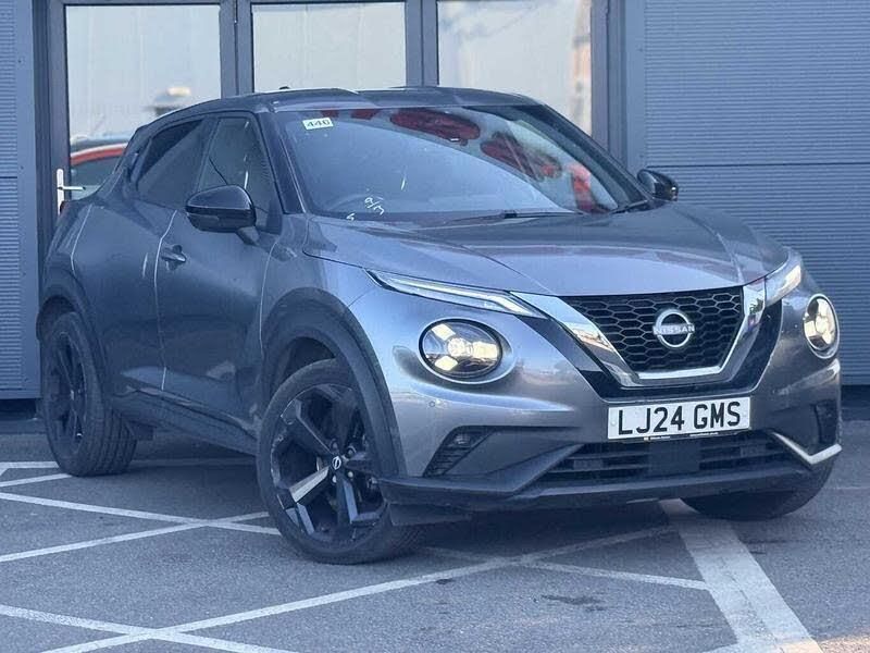 Exterior Features, Metallic paint, Safety, Pearl black door mirrors, Wheels, Tyre puncture repair kit, Paint - Metallic, Metallic - Gun Metallic grey, Trim - Leather, Synthetic leather - Black, Exterior Features, Front and rear electric window with one touch driver window, One touch passenger window, Rain sensor windscreen wipers, Rear privacy glass, Rear wiper, Body colour door handles, Rear side wing doors, Roof spoiler, Shark fin roof antenna in solid Black, Automatic hazard signal with emergency stop signal, Follow me home headlights, High beam assist, LED 3rd brake light, LED daytime running lights, LED front fog lights, LED headlamps, LED rear fog lamp, LED rear lamps, Three blink turn signal, Safety, ABS with EBD and brake assist, Electric handbrake with auto hold function, Electronic Stability Programme (ESP), Hill start assist, Intelligent emergency braking with pedestrian and cyclist recognition, Traction control, VDC Dynamic Vehicle Control, Drive modes select (Eco, normal and sport), Front parking sensor, Intelligent driver alert system, Intelligent lane intervention, Lane departure warning system, Power Steering, Rear parking sensor, Traffic sign recognition, Auto dimming frameless rear view mirror, Electrically adjustable door mirrors with integrated indicators, Heated and auto folding door mirrors, Active ride control, Active Trace Control, Driver and passenger airbags, Driver and passenger side airbags, Front and rear curtain airbags, Height adjustable seatbelts, Rear door child safety locks, Seatbelt reminder for driver/front passenger and rear seats, Three 3 point rear seatbelts, Tyre pressure monitoring system, Audio / Communications, Voice recognition, Wireless Apple CarPlay and Google Android auto, Wireless Smartphone charger, 10 Bose speakers 6 speakers and 2 headrest speakers for driver/passenger seats, 2 X Rear console USB port, Bluetooth system, USB, Aux-in and 12V socket, Bose personal sound stage control, DAB Digital radio, Driver Convenience, Idle start/stop system, Stop/start button, Miscellaneous, 12.3 inch full colour TFT screen combimeter, Emergency and breakdown call, Nissan connect 12.3 inch touch screen entertainment system, Nissan connect nav with TomTom traffic, Nissan connect services and Wifi connection, Outside temperature sensor, Trip computer, Interior Features, Automatic climate control, Card holder on driver sunvisor, Driver side rear coat hanger, Front armrest, Front door pockets with bottle holders, Front/rear passenger grab handles, Internal chrome door handles, Leather gearshift knob, Leather steering wheel, Luggage board, Multifunction steering wheel, Rear door bottle holders, Steering wheel mounted gearshift paddles, Synthetic leather kneepad, Synthetic leather upholstery, Telescopic steering wheel adjustment, Two cupholders in front centre console, Door ambient lighting, Front and rear cabin lights, Gear console ambient circle lighting, Luggage space lighting, Welcome light and console tray ambient lighting, Driver/passenger sunvisors and vanity mirrors, Packs, Heat pack with height adjustable passenger seats - Juke, ProPilot pack - Juke Auto, Trim, 3 height adjustable rear headrests, 3 seat bench in 2nd row, 60/40 split folding rear seat, Driver seat back pocket, Front head restraints, Height adjustable driver's seat, Monoform sporty seats, Passenger seat back pocket, Single front passenger seat, Two rear isofix child seat anchorage points with top tether, Security, Alarm, Immobiliser, Intelligent key and start push button with walk away lock and approach unlock functions, Remote central locking, Wheels, 19 inch Alloy wheels