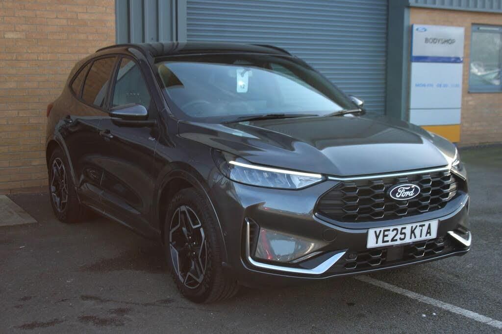 Discover this exceptional 2025 Ford Kuga ST Line X, a 2.5 litre petrol hybrid with remarkably low mileage of just 4713 miles, having had only one owner since new. This Euro 6 compliant model combines sophisticated styling with advanced technology, featuring front and rear parking sensors complete with parking assistance for effortless maneuvering. Enjoy an open and airy cabin thanks to the power opening panoramic roof, offering a truly immersive driving experience.This Kuga stands out with its impressive fuel economy of 52 miles per gallon, making it an economical choice for your journeys. Furthermore, its low insurance group rating indicates that running costs are kept to a minimum, offering excellent value. These highlights demonstrate how this particular Ford Kuga ST Line X provides a superior ownership proposition compared to other vehicles in its class.-No admin fees or hidden costs. Driveaway the same day with 3 days free insurance.