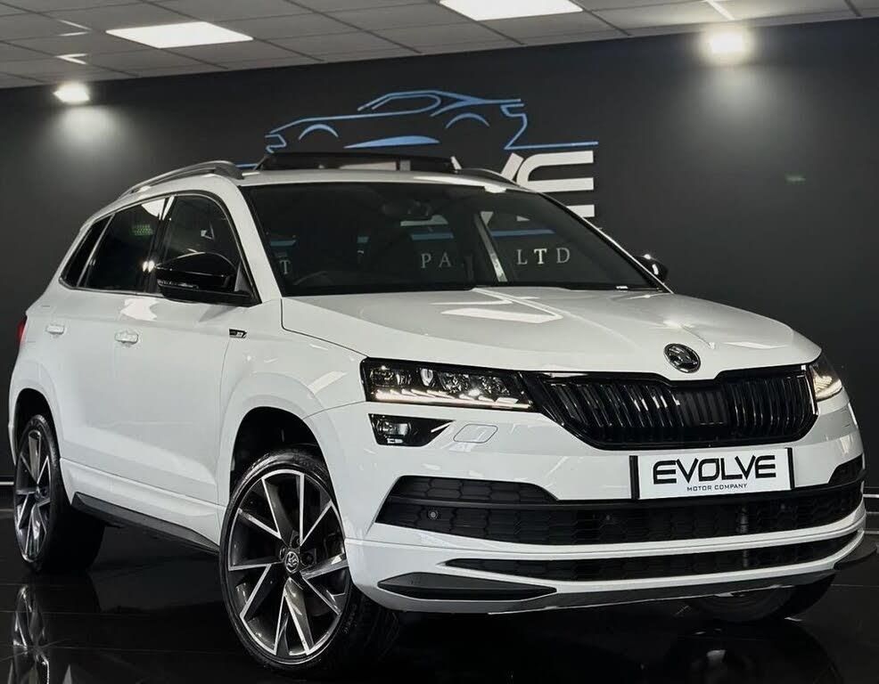 Excellent Example Skoda Karoq ACR SportLine DSG Finished In Mood White with 61,500 Miles Specification to Include: Panoramic Sliding Sunroof, Moon White metallic Piano Black/Carbon decor SPORTLINE Fabric Reverse Camera, Front & Rear Parking Sensors, Automatic LED Headlights, 19" Diamond cut Alloys,