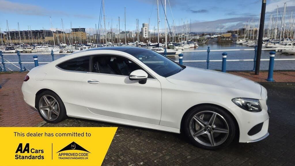 Mercedes-Benz C Class 2.1 C250d AMG Line (Premium Plus) G-Tronic+ Euro 6 (s/s) 2dr, two keys full service history, fresh pads and discs all around , fantastic condition inside and out prefect car .With a full service history and only 67,000 miles, this 2017 Mercedes-Benz C Class C250d AMG Line (Premium Plus) offers exceptional provenance. This Euro 6 compliant 2.1L diesel model boasts a clear vehicle history check and comes with an 18 month warranty and 12 months MOT for your peace of mind. Inside, you'll find comfortable Black Leather upholstery and heated front seats, while the AMG Line trim enhances its sporty appeal.Experience impressive performance with a 0-62mph acceleration of just 6.7 seconds, a highlight that sets this C Class apart from many others. Enjoy the convenience of Active Parking Assist with front and rear sensors, complemented by a reversing camera, making parking effortless. The LED High Performance headlamps with integrated daytime running lights ensure excellent visibility. Furthermore, this model offers excellent fuel economy, achieving up to 61 mpg, along with low CO2 emissions and generous boot space, making it a practical and efficient choice.-18 months warranty