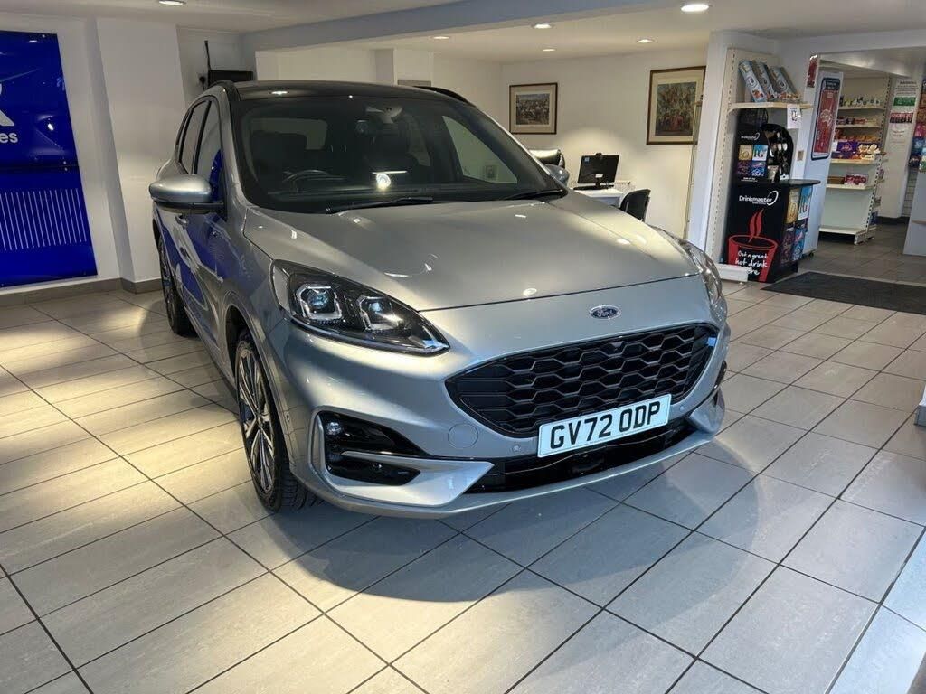 Mini Spare Wheel, 10-Way Power Adjustable Drivers Seat, 12V Power Point in Floor Console, 12v Power Point in Cargo Area, 12v Socket - Voltage Regulator, 19in Alloy Wheels - 5x2 Spoke - High Gloss - Machined, 2nd Row Sliding Seats, 8-Way Manual Passenger Seat including Lumbar Support and Height Adjust, ABS - Anti-Lock Braking System with Enhanced Electronic Stability Control - ESC with Traction Control - Emergency Brake Assist - EBA - Hill Start Assist - Trailer Sway Control, Acoustic Vehicle Alert System - AVAS, Air Conditioning - Electronic Automatic Temperature Control - EATC, Airbag - Driver and Front Passenger Side, Airbag - Front Passenger Deactivation Switch, Airbags - Driver and Front Passenger, Airbags - Front and Rear Side Curtain, Aluminium - Finish Front Scuff Plates with ST-Line Script, Aluminium Foot Pedals - ST-Line Design, Ambient Lighting, Auto Dimming Rear View Mirror, Auto Wipers, Automatic Door Relocking, Automatic Headlights with Auto High-Low Beam, Black Roof Rails, Centre Console with Electronic Parking Brake, Cruise Control with Speed Limiter, Driver and Passengers Sun Visor with Illumination, Dual Exhaust Tailpipes with Unique Brushed Stainless Steel Finish, EPAS - Electric Power Assisted Steering, Electric Childproof Locks on Rear Doors, Electric Parking Brake with Auto Hold, Electrical Charging Point in Second Row, Engine Immobiliser - SecuriLock, Exterior Door Handles - Body Coloured, Ford Easy Fuel System, Ford Keyfree System - Keyless Entry with Ford Power Starter Button, Ford SYNC3 DAB Navigation System, Front Lower Grille - Ebony Black Mesh, Front Seats - 2-Way Manual Height Adjust Passive Head Restraints, Front Seats - Drivers and Passengers Seatback Map Pockets, Front Upper Grille - Carbon Black Honeycombe Mesh and High-Gloss Black Surround, Front Windows - Laminated Glass, Front and Rear Bumper - Sporty Body Colour with Rear Ebony High-Gloss Insert, Front and Rear Floor Mats with Red Stitching, Front and Rear Parking Sensors, Full Digital 12.3in Instrument Cluster, Full LED Headlamps, GEO Awareness - Providing Details of ULEZ Within the Satellite Navigation, Gearshift - Automatic - Electronic Rotary Gearshift Dial, Glovebox Lights, Handsfree Power Tailgate, Headlights - Automatic Follow Me Home Lighting, Headlights - Levelling System - Manual, Headlights - Unique Bending, Headliner - Sports Dark, Heated Driver and Passenger Seats, Heated Rear Seats, Heated Steering Wheel, Heated and Power Folding Door Mirrors with Puddle Lights, High-Mounted Brake Light, Kuga Badge, LED Daytime Running Lights, LED Fog Lights - Front, Lane Keeping Aid with Lane Departure Warning, Large Rear Spoiler, Load Compartment - Lights, Load Compartment - Tie Down Hooks, Load Compartment Carpet, Locking Wheel Nuts, Lower Bodyside Moulding - Body Colour, Lower Door Frame Beltline - Black, Mini Overhead Console with Sunglasses Holder Bin, MyKey, Power Door Deadlocks - Double Locking, Power Door Locks, Power Opening Panoramic Roof, Pre-Collision Assist with Autonomous Emergency Braking, Quickclear Heated Windscreen, Rear Duct on B-Pillar, Rear Lights - LED, Rear Privacy Glass, Rear Seat - 60-40 Split Folding Seats, Rear Seat Centre Head Restraint, Rear Seats - 2-Way Head Restraint Up-Down, Rear Seats - Folding Centre Armrest with Integrated Cup Holder, Rear Seats - Sliding Seat Adjust Tracks - Fore-Aft, Rear View Camera, Red Brake Calipers, Remote Tailgate Release, Removable Package Tray, Rocker Panel Mouldings - Body Colour - ST-Line Design, ST-Line Badge on Left and Right Side Wings, ST-Line Bodystyling Kit, ST-Line Front and Rear Bumper Moulding - Body Colour, Seat Belt - Drivers - Front Passenger and Rear Seat Belt Reminder Alert, Seat Belts - Front 3-Point Seatbelts with Load Limiter, Seat Belts - Front Height Adjustable, Seat Belts - Rear Retractable Rear Belt - 3-Point All Positions, Seats - ISOFIX Mounting Provision for Child Seats - Outer Seats Only, Selectable Drive Modes, Single Rear Fog Light, Sports Seats, Standard Home Charging Cable - 3-Pin Domestic Socket 230V, Steering Column - Locking Electric, Steering Column - Rake and Reach Adjustment, Steering Wheel - ST-Line Sports-Style Perforated Sensico-Trimmed with Red Stitching, Suspension - Sports, Tailgate Badge - PHEV - Plug-In-Hybrid, Tailgate Handle - Body Colour, Tether Anchorage - Two Rear Seat Top Tether Anchorage Restraints, Thatcham Category 1 Perimeter and Volume Sensing Alarm, Tow Hooks - Front and Rear, Trip Computer, Tyre Inflation Kit, Tyre Pressure Monitoring System, Upper Door Frame Beltline - Black, Windows - Power Front and Rear with Global Closing, Winter Pack, Wiper - Intermittent Rear Window Wiper, Wrong Way Alert, eCall, 20in Alloy Wheels - 5x2 Spoke - Pearl Grey - Machined, Driver Assistance Pack, Partial Sensico - Rapton Cloth - Black with Red Stitching, Solar Silver, Technology Pack