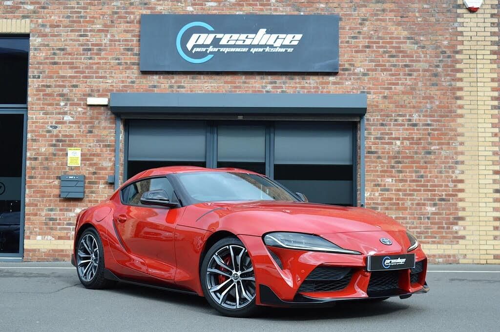 18in Alloy Wheels - 5 Double Spoke - Black and Silver Bi-Tone Machined-face, 4 Speaker Audio System, ABS - Anti Lock Braking System, Active Sound Control, Active Sports Differential, Adaptive Automatic High Beam, Adjustable Speed Limiter -ASL- Switch on Steering Wheel, Aluminium Pedals, Audio Switches on Steering Wheel, Auto Dimming Rear View Mirror, Auto Wipers, Automatic Headlight Cut-Off, Automatic Headlight Levelling, Automatically Retractable Door Mirrors, Autonomous Emergency Braking, Bluetooth Hands Free System, Boot Door Release with Push Button, Boot Light, Cruise Control Switch on Steering Wheel, Cupholders - Front, DAB Digital Radio, Dark Grey Insert on Centre Console, Daytime Running Lights - LED, Digital Speedometer, Drive Mode Selector, Driver and Front Passenger Floor Mats, Driver and Front Passenger Personal Lights, Driver and Passenger Seatback Pockets, Drivers Seat Memory, Dual Exhaust Pipes, Dual-Zone Automatic Air Conditioning, EBS - Emergency Brake Signal, Electric Power Steering - EPS, Electronic Parking Brake, Exhaust Pipe Finisher - Chrome, Front 12V Power Outlet, Front LED Light Guide, Front Power Windows, Front Seat Belt Reminder, Gear Shift Indicator - GSI, Glass-Integrated Antenna, Headlights - Automatic, Headlights - Follow Me Home, Headlights - LED, Heated Driver and Front Passenger Seat, ISOFIX Child Restraint System, Immobiliser, Indicator Integrated in Door Mirrors, Intrusion Sensor, LED High-Mounted Stop Light, LED Indicators, LED Rear Fog Lights, Lane Departure Alert with Steering Control, Light on Drivers and Passenger Sun Visor, Locking Wheel Nuts, Manually Height-Adjustable Driver and Passenger Seat, Manually Reclining Driver and Passenger Seat, Manually Sliding Driver and Passenger Seat, Manually-Tilting Cushion on Driver Seat, Microphone, Navigation and Access to Connected Services, Paddle Shift, Piano Black Door Mirrors, Power Adjustable Lumbar Support on Driver and Passenger Seat, Power Door Locks, Pre-Collision Warning System with Pedestrian and Cyclist Detection, Rear Lights - LED, Rear-View Camera Display, Red Sports Rear Brake Calipers, Remote Boot Door Release in Cabin, Remote Door Locking, Road Sign Assist, Scuff Plates - Aluminium, Service Schedule Warning, Smart Entry and Push-Button Start, Speed-Detecting Automatic Door Locks, Sport Mode Button, Sports Seats - Front, Start Holding Control, Steering Wheel - Manual Telescopic Adjustment, Steering Wheel - Manual Tilt Adjustment, Supplemental Restraint System - SRS - Airbags - 7 Airbags, Supra Sports Front Brake Calipers, Suspension - Adaptive Variable - AVS, TPMS - Tyre Pressure Monitoring System, Tilt Detection Sensors, Tonneau Cover, Toyota Supra Connect, Toyota Supra Safety Plus, Traction Control - TRC, Tyre Repair Kit, USB Connection, VSC - Vehicle Stability Control, Vanity Mirror on Driver and Passengers Sun Visor, Voice Recognition, eCall Emergency Call System, Alcantara - Black, Prominence Red Paintwork