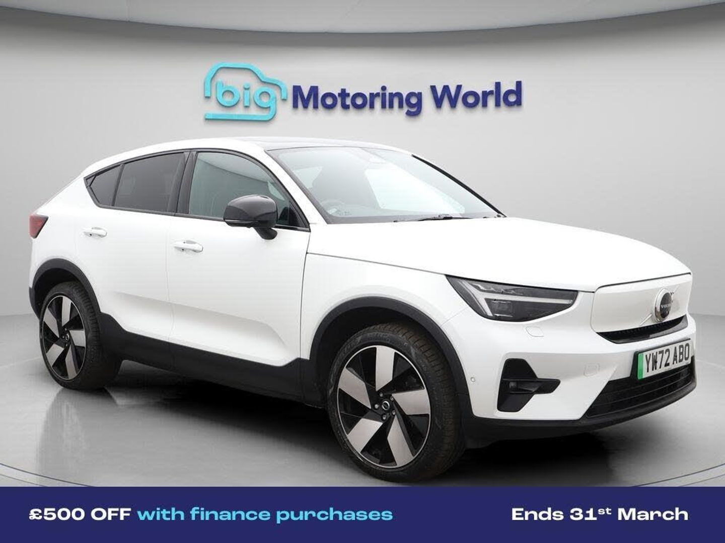 £500 towards your finance depo-Our Volvo C40 is finished in White. Specification includes a range of fantastic features including £500 towards your finance deposit, Panoramic Roof, 20'' Alloy Wheels, Adaptive Cruise Control, Harman Kardon Speakers, Privacy Glass, Gesture Tailgate, Rear View Camera, Surround View, Heated Steering Wheel Specification information is supplied by CAPHPI and may vary to the actual car. This data does not form any part of a buying contact. Please check specification prior to purchase in-store. The MOT is valid until February 2027, visit bigmotoringworld.co.uk for more photos, a 360 tour, service history and a free HPI report.Were BIG on peace of mind and this White Volvo C40 has completed our comprehensive 200 point inspection and passed all checks. Its ready for you to drive away with immediate collection in-store. We include a 90-day warranty as standard plus an option to extend for up to 3 years.Reserve this car exclusively for you, safely and securely at bigmotoringworld.co.uk, with a fully refundable £99 deposit. Test drive before you buy, with no commitment, no hassle and a completely haggle free experience. Still searching and want to see thousands more cars? We are BIG on choice with over 8000 cars to choose from.Visit our award winning web site bigmotoringworld.co.uk.Were Big Motoring World and were BIG on what matters to you.
