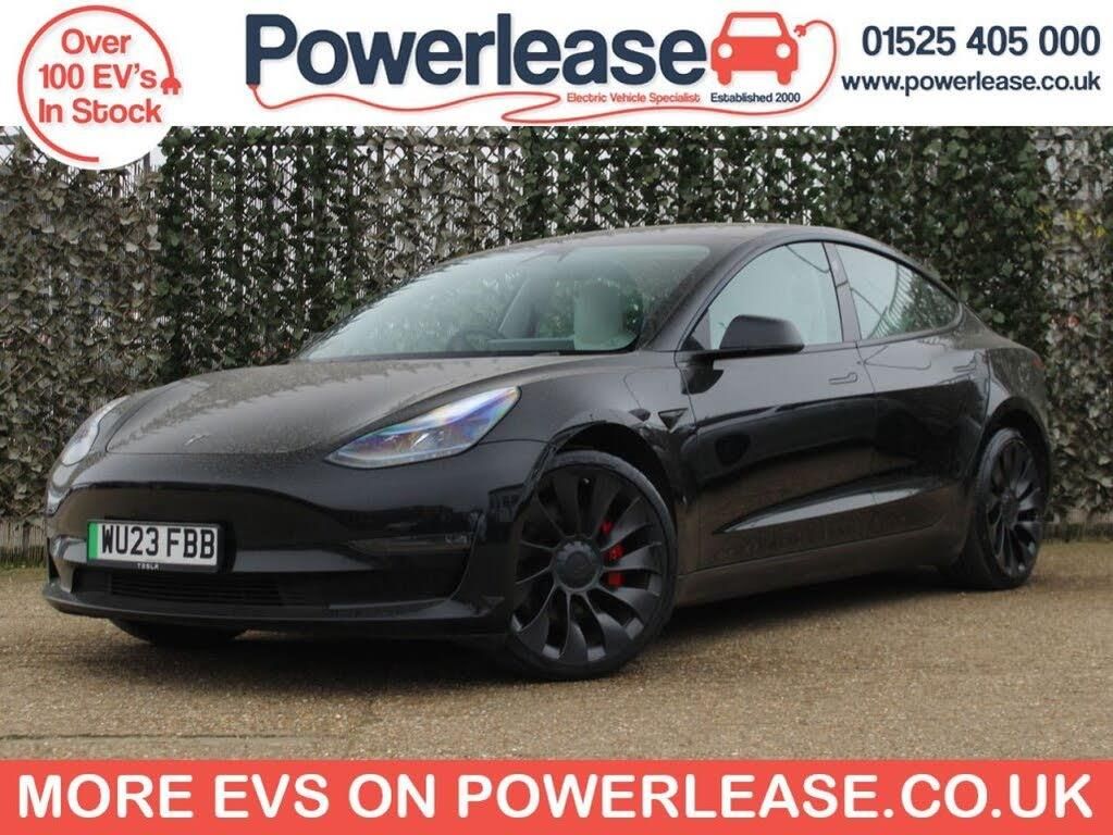 **92.1% BATTERY HEALTH** This 2023 Tesla Model 3 Performance is a remarkable example, having had only one owner since new. As an electric vehicle, it boasts a four wheel drive drivetrain powered by an 82 kWh battery, offering an impressive maximum range of 340 miles. Charging at home on a 7kW charger takes approximately 12 hours, while rapid public charging can replenish the battery from empty to 80% in just 26 minutes. This Model 3 comes equipped with convenient features such as Park Assist Camera with front camera functionality, keyless entry and remote control via an app, and keyless go. You'll also appreciate the Bluetooth connection for seamless audio streaming and calls, alongside a 2 Zone Climate Control system to ensure comfort for all occupants. The performance of this Tesla Model 3 is truly exceptional, with a breathtaking 0 to 60mph acceleration time of just 3.1 seconds, setting it apart from many other vehicles in its class. This rapid acceleration is a testament to its powerful electric drivetrain. Furthermore, the generous boot space provides ample room for luggage, shopping, or equipment, making it a practical choice for everyday use and longer journeys alike. BATTERY HEALTH CHECK AVAILABLE ON REQUEST | SPECIALIST EV EXTENDED WARRANTIES | ALL VEHICLES FULLY INSPECTED | ALL VEHICLES SERVICED & MOT'ED | HPI CHECKED AND CERTIFIED | FINANCE AVAILABLE | PART EXCHANGE AVAILABLE | CLICK AND COLLECT AVAILABLE | HOME DELIVERY AVAILABLE | BUY ONLINE VIA OUR WEBSITE WWW.POWERLEASE.CO.UK | IN BUSINESS FOR OVER 20 YEARS EST 2000 |