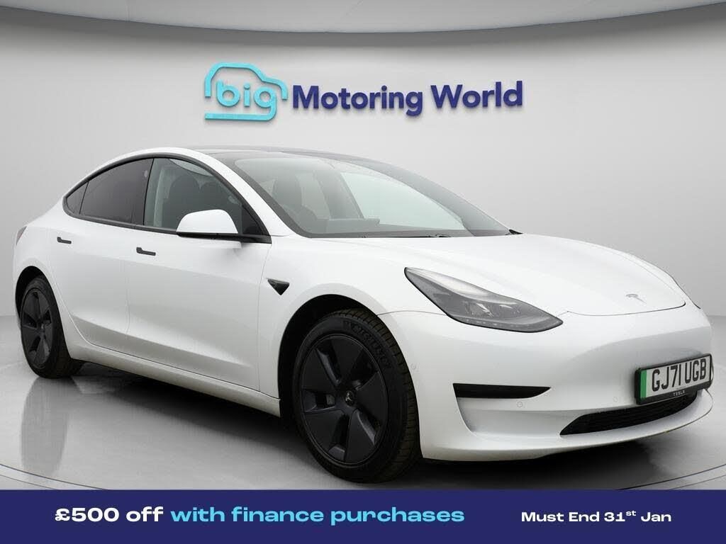 £500 towards your finance depo-Our Tesla Model 3 is finished in White. Specification includes a range of fantastic features including £500 towards your finance deposit, Leather Seats, Adaptive Cruise Control, Satellite Navigation, Privacy Glass, Heated Seats, Wireless Phone Charging, Rear View Camera, Heated Steering Wheel, Bluetooth Specification information is supplied by CAPHPI and may vary to the actual car. This data does not form any part of a buying contact. Please check specification prior to purchase in-store. The MOT is valid until September 2026, visit bigmotoringworld.co.uk for more photos, a 360 tour, service history and a free HPI report.Were BIG on peace of mind and this White Tesla Model 3 has completed our comprehensive 200 point inspection and passed all checks. Its ready for you to drive away with immediate collection in-store. We include a 90-day warranty as standard plus an option to extend for up to 3 years.Reserve this car exclusively for you, safely and securely at bigmotoringworld.co.uk, with a fully refundable £99 deposit. Test drive before you buy, with no commitment, no hassle and a completely haggle free experience. Still searching and want to see thousands more cars? We are BIG on choice with over 8000 cars to choose from.Visit our award winning web site bigmotoringworld.co.uk.Were Big Motoring World and were BIG on what matters to you.
