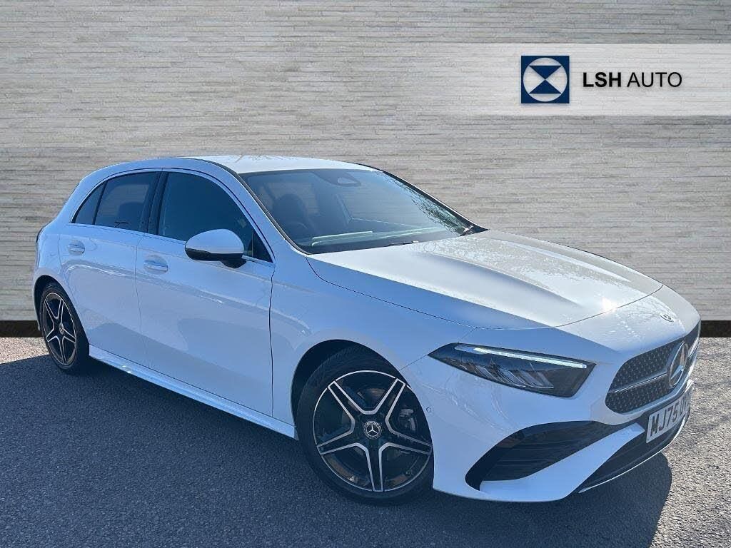 This Mercedes Benz A Class boasts a full dealership service history and remains manufacturer approved, offering peace of mind for its next owner. This 2025 A180h AMG Line (Executive) model features a 1.3L petrol hybrid engine, meeting Euro 6 emissions standards. It comes with a substantial 28 month warranty and an MOT valid until September 2028, having had only one owner from new. Notable features include Keyless Go for effortless entry and starting, dual Bluetooth interfaces for seamless connectivity, and convenient wireless phone charging. For enhanced safety, it is equipped with Blind Spot Assist, and the heated front seats ensure comfort during colder journeys.The A Class offers a dynamic driving experience, accelerating from 0 to 62mph in just 9.2 seconds, demonstrating its responsive performance. This acceleration figure highlights its capability compared to other vehicles in its class. Furthermore, the generous boot space provides ample room for luggage or shopping, making it a practical choice for everyday use. The combination of its advanced technology, comfort features, and strong provenance makes this Mercedes Benz A Class a compelling option.-*EXECUTIVE, SAT NAV, AMG LINE*-Mercedes-Benz A Class A180 AMG Line Executive 5dr Auto-LSH Auto UK Ltd - An LSH Group Company. The Worlds Largest Retailer of Mercedes-Benz Passenger Cars