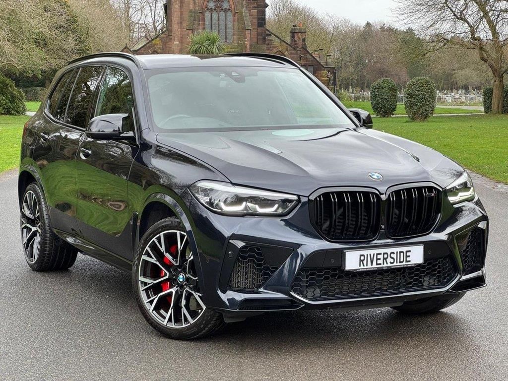 2022 (72) BMW X5 M 4.4i V8 Competition Auto xDrive Euro 6 (s/s) 5dr — 36,588 miles Presented by Riverside Auto Sales A commanding example of the BMW X5 M Competition, finished in Carbon Black (416) with Full Merino Black leather. Delivering an immense 4.4-litre twin-turbo V8 producing 625hp, paired with M xDrive and Steptronic transmission, this is one of the most complete high-performance SUVs on the market. Offered at £4,680 below retail valuation, this represents outstanding value for a properly specified Competition model. Performance & Competition Specification 4.4 Twin-Turbo V8 – 625hp M Competition Package (07MA / 07MN) M Sport Exhaust System M Compound Brakes – Red High Gloss M xDrive All-Wheel Drive M Multifunction Seats M Seat Belts M Shadowline with Expanded Scope Star Spoke 809M Alloy Wheels This is the full-fat Competition variant — sharper chassis tuning, enhanced exhaust character and distinctive M detailing throughout. Exterior Highlights Carbon Black Metallic (416) Sun Protection Glazing Shadowline Roof Rails Adaptive LED Headlights Trailer Coupling Comfort Access Electric Memory Seats Interior & Technology Full Merino Leather – Black (X3SW) Alcantara Anthracite Headliner 4-Zone Automatic Climate Control Heat Comfort Package (Front) Harman/Kardon Surround Sound BMW Live Operating Area Professional Connected Package Professional BMW Gesture Control Drive Recorder Wireless Charging & WLAN Hotspot Driver Assistance & Safety Driving Assistant Parking Assistance System Plus Active Guard & Active Protection High-Beam Assistant Tyre Pressure Display Alarm System The X5 M Competition blends supercar pace with everyday usability — 0-62mph in around 3.8 seconds while remaining refined, spacious and practical. With strong market demand for properly specced Competition models, this example stands out both in condition and value. Finance available at 8.9% APR via BMW Finance (Alphera) ???? 0151 486 9838 ?? info@riverside-autosales.co.uk Riverside Auto Sales #BMW #BMWX5M #X5MCompetition #MCompetition #V8SUV #PerformanceSUV #UsedCarsUK #AutoTraderUK #RiversideAutoSales. 21in-22in Alloy Wheels - Bi-Colour - Style 809,32GB Hard Disc Drive HDD Memory,Active M Differential,Active Protection,Air Conditioning - Automatic with Four Zone Control,Airbags,Alarm System,Ambient Lighting,Attentiveness Assistant,Automatic Start-Stop Button,Automatically Dimming Rear View Mirror,BMW ConnectedDrive Online Services,BMW Gesture Control,BMW Individual High-Gloss Shadowline with Extended Contents,BMW Individual Instrument Panel Finished in Leather,BMW Legal Emergency Call,BMW Live Cockpit Professional,BMW TeleServices,Brake Energy Regeneration,Brake Pad Wear Indicator,Brake System,Bumper System,Centre Lock Switch - Driver and Front Passenger Door,Child Seat ISOFIX Attachment - Outer Rear Seats - includes Top Tether,Closing System with Central Locking,Comfort Access System,Connected Package Pro,Crash Sensor - Activating Central Locking Release - Hazard Warning Lights - Fuel Cut Off - Interior Lighting and Activation of the Safety Battery Clamp,Cruise Control with Brake Function,Cup Holders - Fro