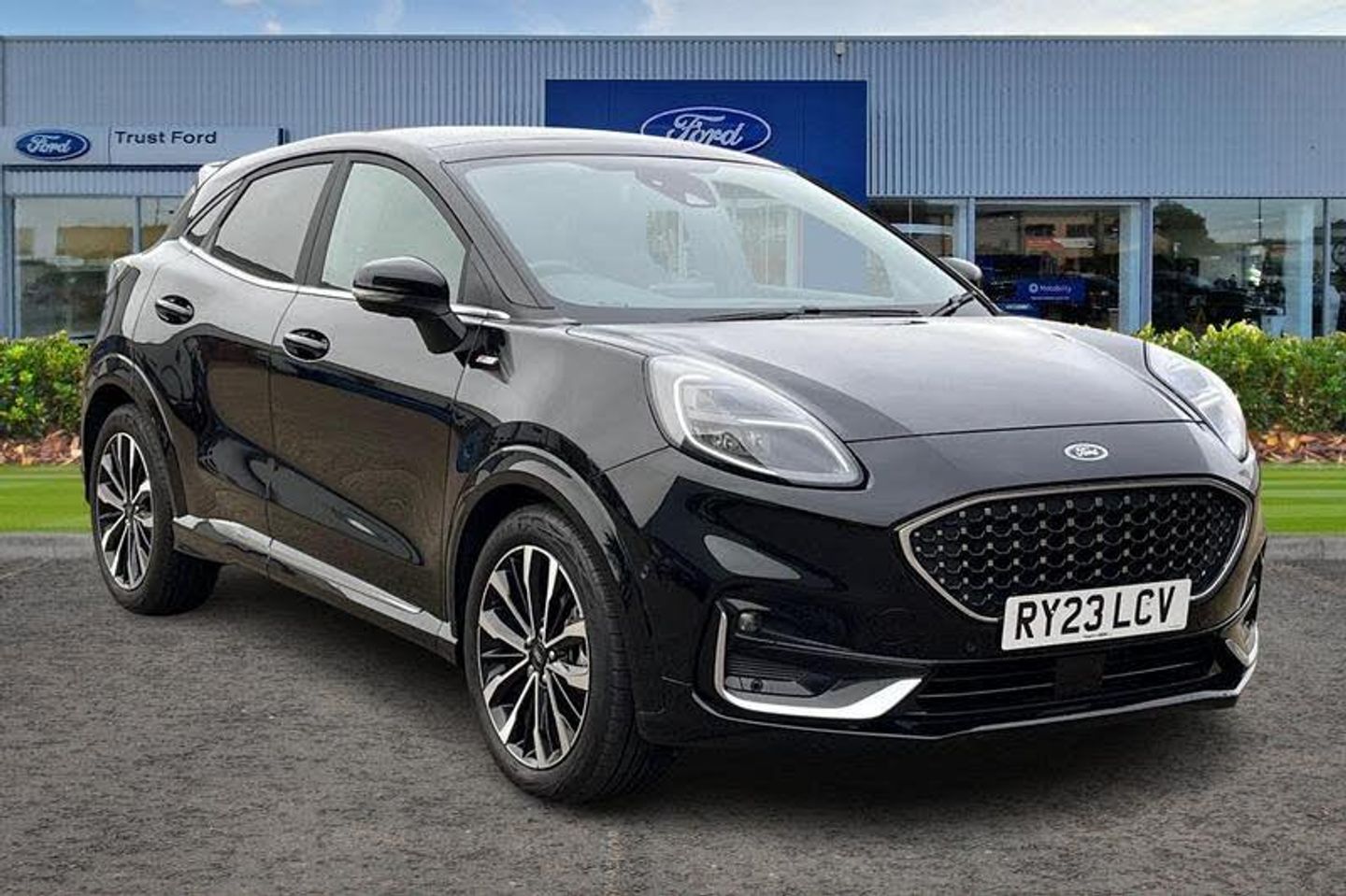 Driver impairment monitor, Emergency call service, Ford easy fuel, Front and rear parking sensors, Full digital 12.3 instrument cluster, Lane keeping aid with lane departure warning, Power assist steering, Selectable drive modes(Normal, Eco, Sport, Slippery and Trail), Speed sign recognition, Automatic headlights with auto high beam, Automatic rain sensing wipers, Bodyside chrome styling, Fixed LED signature headlamps, Front fog lamps, Gloss black with chrome elements on front and rear bumpers, High chrome waistline, LED daytime running lights, LED rear lamps, Power foldable heated door mirrors with puddle lamps and puma logo protection, Privacy glass to side rear windows and tailgate glass, Quickclear heated windscreen, Rear side wing doors, Rear wiper, Third brake light, Vignale body styling kit with unique grille, 3 seat bench in 2nd row, Centre console with armrest and stowage, Ford megabox extended bootspace, Front and rear floor mats, Front and rear head restraints, Manual 4 way driver seat adjust with lumbar adjustment and massage function, Manual 4 way passenger seat adjust with lumbar adjustment and massage function, Premium sensico leather upholstery with metal grey stitching, Premium sensico perforated flat bottomed steering with metal grey stitching, Premium sensico wrapped instrument cluster, Single front passenger seat, Wireless charging pad with electronic air temperature control (EATC), 3 rear seatbelts, Child safety lock, Electronic stability control (ESC) and hill start assist, Pedestrian/cyclist detection & post-collision braking, Pre collision assist system, Tyre pressure monitoring system (TPMS)