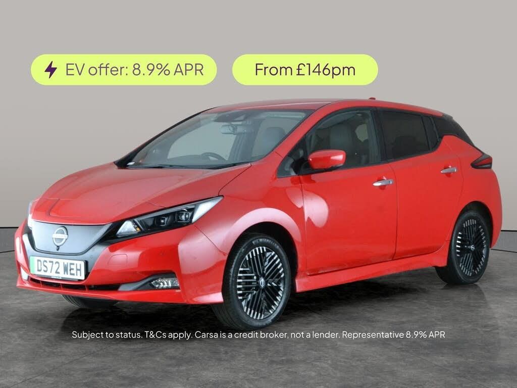 Experience the future of driving with the Nissan Leaf, finished in a striking red. Enjoy absolute comfort with heated and cooled seats, a heated steering wheel, and the premium Heat Pack. Stay entertained with a BOSE upgraded sound system and seamless Apple CarPlay integration. Maneuver confidently with a 360-degree surround view camera, Around View Monitor, and adaptive cruise control. With advanced LED headlights and satellite navigation, every journey becomes a delight in this impressive electric hatchback. 2 services recorded, last serviced on 18/08/2025 at 33,989 miles. MOT to 30/12/2026. Visit our website for service history, online valuation, full vehicle specification plus multiple images. This vehicle is VAT qualifying. Any feature/option specified here is from 3rd party data. We cannot guarantee the accuracy of any specification supplied by a 3rd party. We recommend that you physically check the specification of the vehicle on site prior to purchase. This information does not form part of the buying contract. Terms & Conditions apply. We have over 2,000 cars available from our 10 national branches, check our website to see all our stock. Our Trustpilot rating is 4.4/5 with over 9,000 reviews.