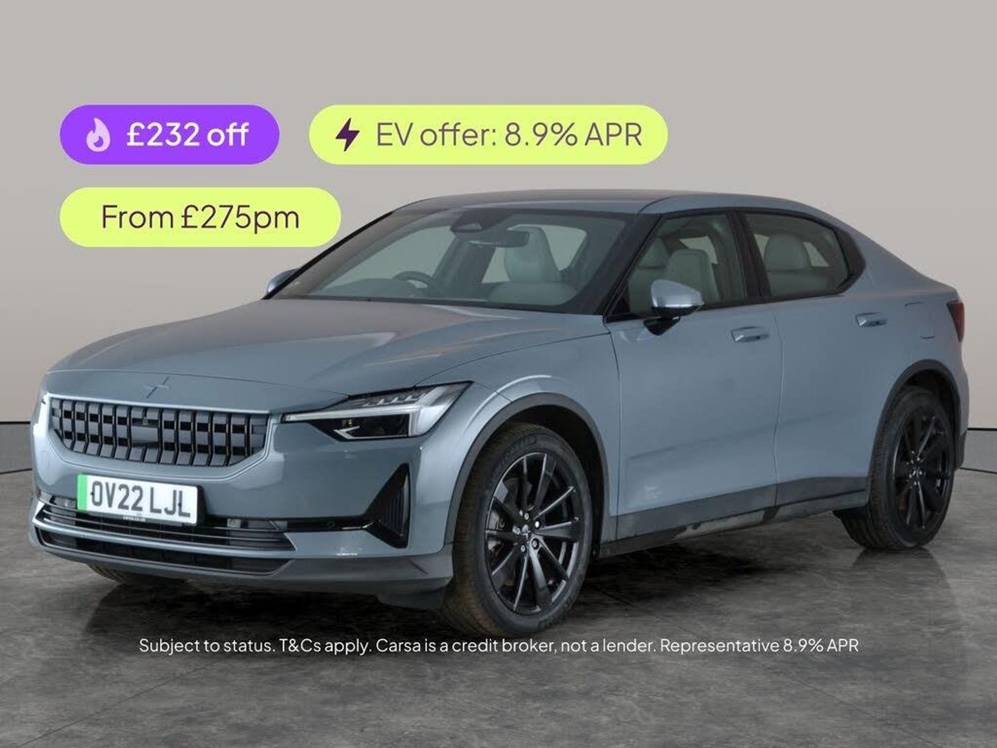 Experience the future of driving with this sleek grey Polestar 2. Enjoy heated electric seats with driver memory, adaptive headlights, and seamless Apple CarPlay connectivity. Effortlessly park with Park Assist and a reversing camera, while the lane departure warning system and adaptive cruise control enhance your safety and comfort. Advanced keyless entry and sophisticated LED headlights complete the premium experience in this all-electric, all-wheel drive fastback. 1 service recorded, last serviced on 22/01/2026 at 37,414 miles. MOT to 31/01/2027. Visit our website for service history, online valuation, full vehicle specification plus multiple images. Any feature/option specified here is from 3rd party data. We cannot guarantee the accuracy of any specification supplied by a 3rd party. We recommend that you physically check the specification of the vehicle on site prior to purchase. This information does not form part of the buying contract. Terms & Conditions apply. We have over 2,000 cars available from our 10 national branches, check our website to see all our stock. Our Trustpilot rating is 4.4/5 with over 9,000 reviews.