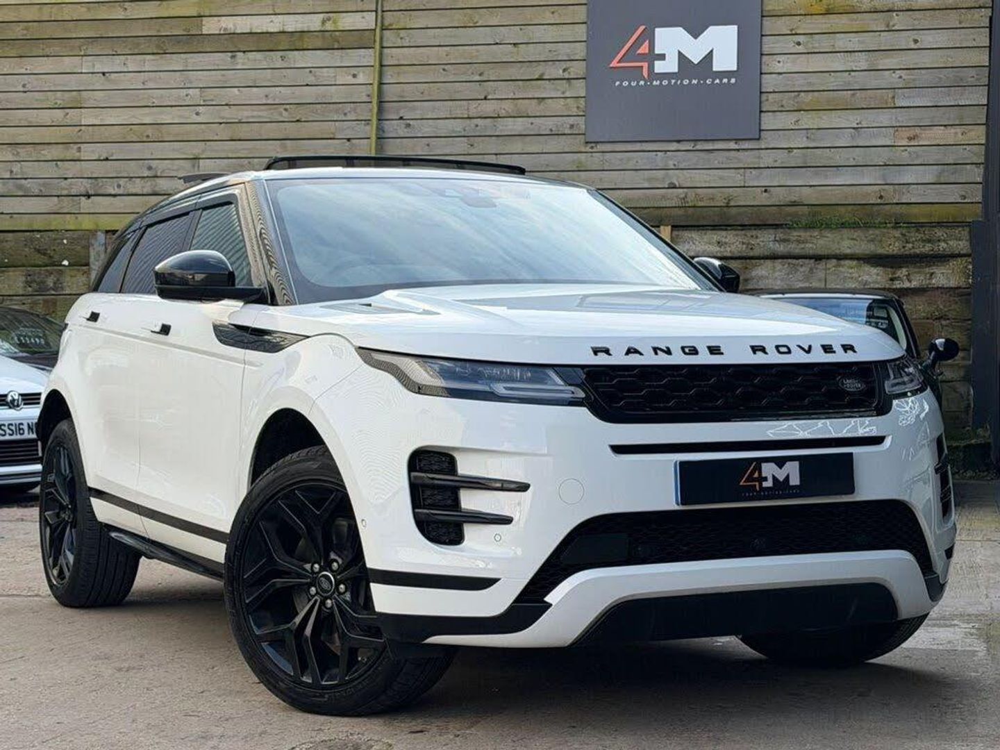 Sliding Panoramic Roof Including Powered Blind, Head-Up Display, Fuji White, Drive Pack, Privacy Glass, Black Exterior Pack, 20in Alloy Wheels - 5 Split-Spoke - Style 5079 - Gloss Black, 14-way - Heated Electric Memory Front Seats, 20in Alloy Wheels - 5 Split-Spoke - Style 5079 - Gloss Sparkle Silver, 360 Degree Parking Aid, 40-20-40 Split Fold Rear Seat, ABS - Anti Lock Braking System, ATPC - All Terrain Progress Control, Airbags - Driver Knee, Airbags - Front - Driver and Front Passenger, All Season Tyres, Ambient Interior Lighting, Android Auto, Apple CarPlay, Auto-Dimming Interior Rear View Mirror, Auto-Dimming Power Fold - Heated Door Mirrors with Memory and Approach Lights, Automatic Headlight Levelling, Automatic Headlights, Autonomous Emergency Braking, Black Gearshift Paddles, Bluetooth Connectivity, Body Coloured Roof, Brake Pad Wear Indicator, Bright Metal Pedals, Carpet Mats, Chrome Treadplates, Clear Exit Monitor, Cruise Control and Speed Limiter, Customer Configurable Autolock, DAB - Digital Audio Broadcast, DSC - Dynamic Stability Control, Driver Condition Monitor, EBA - Emergency Brake Assist, EBD - Electronic Brake-Force Distribution, EPAS - Electronic Power Assisted Steering, ETC - Electronic Traction Control, Efficient Driveline, Electric Parking Brake, Electric Windows with One-Touch Open-Close and Anti-Trap, Evoque and R-Dynamic Badge, Flush Deployable Door Handles, Front and Rear Animated Directional Indicators, HDC - Hill Descent Control, Headlights - Automatic High Beam Assist, Headlining - Ebony Morzine, Heated Rear Window with Timer, Hill Launch Assist, InControl - Remote App, InControl Apps, Interactive Driver Display, Intrusion Sensor, Lane Keep Assist, Leather Steering Wheel, Locking Wheel Nuts, Low Traction Launch, Manually Adjustable Steering Column, Navigation Pro, Overhead Lighting Console, Overhead Stowage for Sunglasses, P200 Badge, Park Assist, Passive Front Headrests, Passive Suspension, Power Operated Child Locks, Power Socket Pack 1, Powered Tailgate, Premium LED Headlights with Signature DRL, Pro Services and Wi-Fi Hotspot, Push Button Start, R-Dynamic Exterior Pack, RSC - Roll Stability Control, Rain Sensing Windscreen Wipers, Rear Air Vents, Rear Fog Lights, Rear ISOFIX, Rear Traffic Monitor, Rear View Camera, SE Badge, Seat Belt Reminder, Seats - Rear Centre Head Restraint, Side Curtain Airbags and Thorax, Smart Settings, Sound System, Standard Roof, Sun Visors - Illuminated Vanity Mirrors, TPMS - Tyre Pressure Monitoring System, Tailgate Spoiler, Terrain Response 2, Torque Vectoring, Touch Pro Duo, Traffic Sign Recognition and Adaptive Speed Limiter, Trim Finish - Gradated Linear Dark Aluminium, Twin Front Cupholders with Cover, Twin Sliding Front Centre Armrest, Two-Zone Climate Control, Tyre Repair System, Voice Control, Windscreen - Heated, Windscreen Washer Jets - Heated