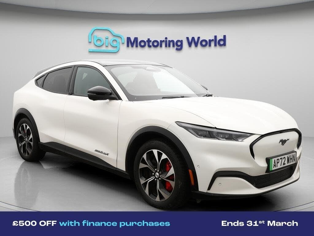 £500 towards your finance depo-Our Ford Mustang Mach-E comes with optional extras worth £1,150. Specification includes a range of fantastic features including £500 towards your finance deposit, Panoramic Roof, All Wheel Drive, 19'' Alloy wheels, Leather Seats, Apple CarPlay, Adaptive Cruise Control, Bang & Olufsen Speakers, Android Auto, Ford SYNC Specification information is supplied by CAPHPI and may vary to the actual car. This data does not form any part of a buying contact. Please check specification prior to purchase in-store. The MOT is valid until September 2026, visit bigmotoringworld.co.uk for more photos, a 360 tour, service history and a free HPI report.Were BIG on peace of mind and this White Ford Mustang Mach-E has completed our comprehensive 200 point inspection and passed all checks. Its ready for you to drive away with immediate collection in-store. We include a 90-day warranty as standard plus an option to extend for up to 3 years.Reserve this car exclusively for you, safely and securely at bigmotoringworld.co.uk, with a fully refundable £99 deposit. Test drive before you buy, with no commitment, no hassle and a completely haggle free experience. Still searching and want to see thousands more cars? We are BIG on choice with over 8000 cars to choose from.Visit our award winning web site bigmotoringworld.co.uk.Were Big Motoring World and were BIG on what matters to you.-Multi Award Winning Website & Car Supermarket of the year WINNER 2018. Call now.