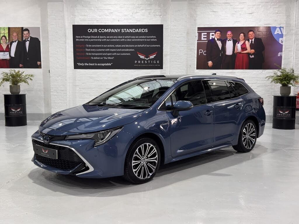WATCH OUR 4K VIDEO Please watch our video for a transparent look at the cars condition and features. Video Link: WHY BUY FROM US: Buy with confidence from a trusted, multi-award-winning family dealership known for exceptional cars, honest advice, and outstanding customer care. Call us today to experience the difference. TEL : 023 92 177 424. www.prestigedieselsportsmouth.co.uk THE CAR: This Toyota Corolla 2.0 VVT-h Excel Touring Sports has had just one owner with full Toyota service history. Renowned for exceptional reliability and low running costs, this self-charging 2.0 hybrid delivers smooth performance with up to 53.3 mpg combined and just 120g/km CO2 emissions. Backed by Toyota Relax warranty up to 10 years/100,000 miles when serviced at Toyota for complete peace of mind. The wheels have just been professionally powder coated and diamond cut, and the whole car has been machine polished, presenting it in excellent condition throughout. SERVICE HISTORY: Full Toyota Service History. ???? 02.10.2021 @ 8,326 mls, ???? 08.10.2022 @ 14,662 mls, ???? 08.12.2023 @ 21,956 mls, ???? 13.12.2024 @ 27,981 mls, ???? 26.08.2025 @ 30,873 mls. (10yrs/100,000miles Toyota Relax Warranty when serviced at Toyota) KEY SPEC: Panoramic Roof - Power Sunshade, JBL Premium Sound with 8 Speakers, Toyota Safety Sense: PreCollision System, Full-range Adaptive Cruise Control, Automatic High Beam, Lane Departure Alert, Lane Trace Assist, Sway Warning, Road Sign Assist, Rear Camera, Hill-start Assist, Intelligent, Apple CarPlay & Android, Auto Assist, Power back door with Kick Sensor, Smart Entry, Leather Sport Seats Black leather & Red Accents... OUR PREP: Our cars are detailed to our high standards using professional products & equipment. All cars are two stage polished, mechanically inspected, diagnostically checked and test driven for your peace of mind.