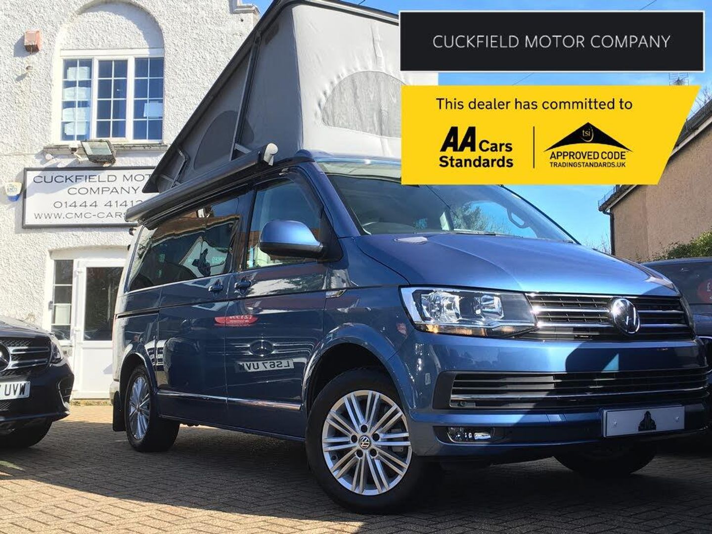 Comprehensive service history,Acapulco Blue,Reversing Camera with Front and Rear Parking Sensors,CARPLAY,Satellite navigation,Bluetooth Phone & Audio,Bike rack,Heated seats,Cruise Control,DIESEL HEATER,Towbar,17'' Alloy wheels,4 Birth,Air conditioning,DAB Radio,Deck chairs in tailgate,Electric folding mirrors,Electric hookup,Electric pop up roof,Fridge,Gas cooker,Adjustable table in rear,Hob,Privacy Glass,Privacy blinds,Rear heating,Sink,Wind out awning, Comprehensive history
