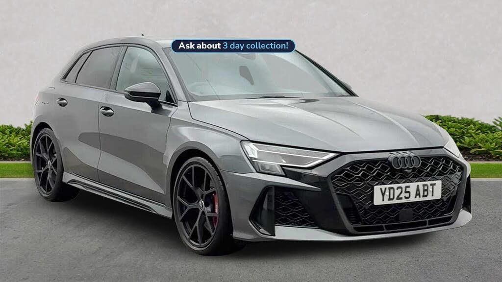 YD25ABT. Glasgow Audi are offering a rare opportunity to own this AUDI RS3 Sportback 400 PS S tronic. This 1 owner vehicle has full service history, has been prepared for sale by our fully trained, experienced and skilled technicians passing our exacting pre sale checks and is ready to go. ===================================================================== The RS3 offers thrilling performance in a compact package, thanks to its iconic engine delivering sharp acceleration and a unique exhaust note. It features quattro all-wheel drive, aggressive styling, and advanced tech. Ideal for city driving with serious track potential, it blends everyday usability with hot-hatch excitement.Standard features on this car include Integrated SATELLITE NAVIGATION with real-time routing and traffic updates. FULL LEATHER delivering a luxury feel in the cabin. CLIMATE CONTROL which automatically regulates cabin temperature for you. VIRTUAL COCKPIT so that you can customise the digital dashboard with maps, gauges, and media. CRUISE CONTROL to maintain a steady speed without constant pedal input. FRONT AND REAR PARKING SENSORS to help manoeuvring in tight spaces whether you are going forward or reversing. REAR CAMERA for easier and safer reversing. HEATED FRONT SEATS to keep your comfortable in cold weather conditions. Plus lots more. - As a VAT Qualifying vehicle it has the additional benefit to VAT Registered individuals or companies buying the car solely for business use, as they could reclaim the 20% VAT from the purchase price. ===================================================================== 150 MULTI POINT CHECK | AUDI PARTS |FACTORY TRAINED TECHNICIANS 12 MONTH MANUFACTURER BACKED WARRANTY & ROADSIDE ASSISTANCE. AUDI CONNECTED|HISTORY CHECKS ===================================================================== Lookers are an authorised representative for a wide range of award-winning car manufacturers, providing you with an unparalleled choice of quality and approved used cars, currently for sale. Our exceptional standards ensure you receive the best possible service when you purchase with us, ensuring peace of mind when you drive away with your new vehicle. With us representing so many great brands we are an excellent position to offer you a fair and transparent price for your part exchange. At Lookers, we care about our customers and want to ensure that the price you see is the price you pay. Our Transparent pricing policy simply means, honest, straightforward pricing offering our vehicles at the best price possible; ensuring no haggling or hassle for you.