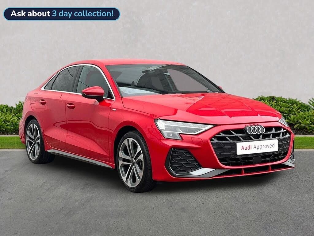 SC25KSK . Wearside Audi are offering a rare opportunity to own this AUDI A3 Saloon S line TFSI 150 PS S tronic. This vehicle was registered by us for use by one of our colleagues & has been maintained by us in accordance with the manufacturers recommendations. The vehicle is now being readied for sale & as such represents a strong saving against the price of purchasing this as a brand new vehicle. In preparation for sale this vehicle has had all of it's software updates carried out and has passed our internal pre sale checks. - In accordance with the manufacturers requirement, this vehicle is sanctioned for handover from this month. ===================================================================== The A3 blends sporty driving with refined design. The A3 offers punchy engines, advanced tech, and a premium cabin. A strong entry into the Audi brand, ideal for first-time luxury buyers.Standard features on this car include Integrated SATELLITE NAVIGATION with real-time routing and traffic updates. SATELLITE NAVIGATION via APPLE CAR PLAY which allows integration using apps like Maps to help manage your journeys. FULL LEATHER delivering a luxury feel in the cabin. CLIMATE CONTROL which automatically regulates cabin temperature for you. VIRTUAL COCKPIT so that you can customise the digital dashboard with maps, gauges, and media. CRUISE CONTROL to maintain a steady speed without constant pedal input. FRONT AND REAR PARKING SENSORS to help manoeuvring in tight spaces whether you are going forward or reversing. REAR CAMERA for easier and safer reversing. HEATED FRONT SEATS to keep your comfortable in cold weather conditions. Plus lots more. ===================================================================== 150 MULTI POINT CHECK | AUDI PARTS |FACTORY TRAINED TECHNICIANS 12 MONTH MANUFACTURER BACKED WARRANTY & ROADSIDE ASSISTANCE. AUDI CONNECTED|HISTORY CHECKS ===================================================================== Lookers are an authorised representative for a wide range of award-winning car manufacturers, providing you with an unparalleled choice of quality and approved used cars, currently for sale. Our exceptional standards ensure you receive the best possible service when you purchase with us, ensuring peace of mind when you drive away with your new vehicle. With us representing so many great brands we are an excellent position to offer you a fair and transparent price for your part exchange. At Lookers, we care about our customers and want to ensure that the price you see is the price you pay. Our Transparent pricing policy simply means, honest, straightforward pricing offering our vehicles at the best price possible; ensuring no haggling or hassle for you.