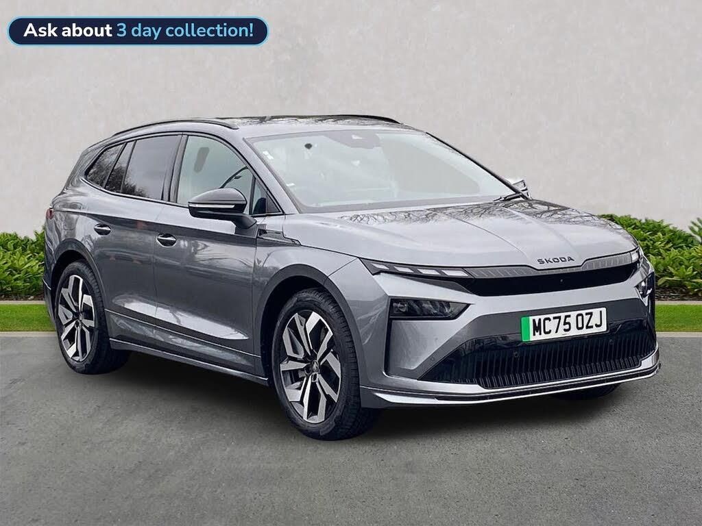 Finished in Graphite Grey Metallic, this KODA Enyaq SportLine 85 delivers 286 PS from its smooth single-speed electric drivetrain, paired with an 82 kWh battery and rapid DC charging up to 135 kW. Key specification includes: 13" touchscreen with satellite navigation, wireless Apple CarPlay & Android Auto, Bluetooth, DAB radio, Wi-Fi hotspot, USB-C ports front and rear, wireless phone charging with cooling, predictive adaptive cruise control with traffic jam assist, blind-spot monitoring, front and rear parking sensors, rear spoiler, gloss-black exterior styling, 20" Vega black alloy wheels, privacy and acoustic glass, heated sports seats, heated leather sports steering wheel with regen paddles, tri-zone climate control, ambient lighting, electrically operated tailgate with virtual pedal, digital cockpit, progressive dynamic steering, sports suspension and keyless entry with walk-away locking. Test drives are welcome, a personalised walk-around video can be provided on request and home delivery is available for added convenience. Competitive finance options are also available speak to the team for a tailored quotation. Contact us today to arrange your viewing or reserve this outstanding electric SUV.
