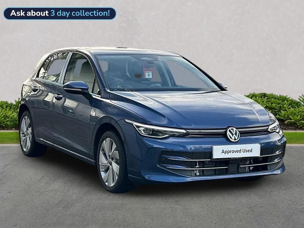 Volkswagen Golf 1.5 TSI eHybrid Style Ex-Demonstrator Coming Soon Available from 1st May 2026 | 1,500 miles This Volkswagen Golf eHybrid Style is a superb plug-in hybrid hatchback, combining strong performance with excellent efficiency and everyday usability. Finished in the striking Anemone Blue Metallic, this ex-demonstrator offers ultra-low mileage and a high level of standard technology, making it an ideal choice for both company car and private buyers. Key Features & Specification 1.5 TSI Plug-in Hybrid Petrol Engine (204 PS) DSG Automatic Transmission Plug-in Hybrid (19.7kWh Battery) Ex-Demonstrator Anemone Blue Metallic Style Trim Discover Navigation with 12.9" Infotainment Display Digital Cockpit IDA Voice Assistance with ChatGPT Adaptive Cruise Control with Speed Limiter Front Assist with Pedestrian & Cyclist Monitoring Travel Assist, Lane Assist & Emergency Assist Proactive Passenger Protection System Rear Parking Assistance Light & Vision Pack with High Beam Assist Auto-Dimming Rear View Mirror Rain Sensor Heated Front Seats Heated Leather-Wrapped Multifunction Steering Wheel with Shift Paddles Wireless App-Connect e-SIM Connectivity Volkswagen Approved Used Benefits 2026 Standard cover with an Approved Used purchase: 1 Year Volkswagen Warranty 1 Year Roadside Assistance When financed with Solutions PCP from Volkswagen Financial Services: Up to 2 Years Servicing for only £99¹ 1 Year Volkswagen Warranty² 1 Year Roadside Assistance² Finance Deposit Contribution available, subject to vehicle age and finance terms³ Important Information ¹ Available on vehicles up to 8 years old. Covers two consecutive services for Petrol, Diesel and eHybrid vehicles. ² Valid for vehicles up to 100,000 miles and less than 8 years old at point of activation. ³ Finance subject to status and availability. Volkswagen Financial Services.