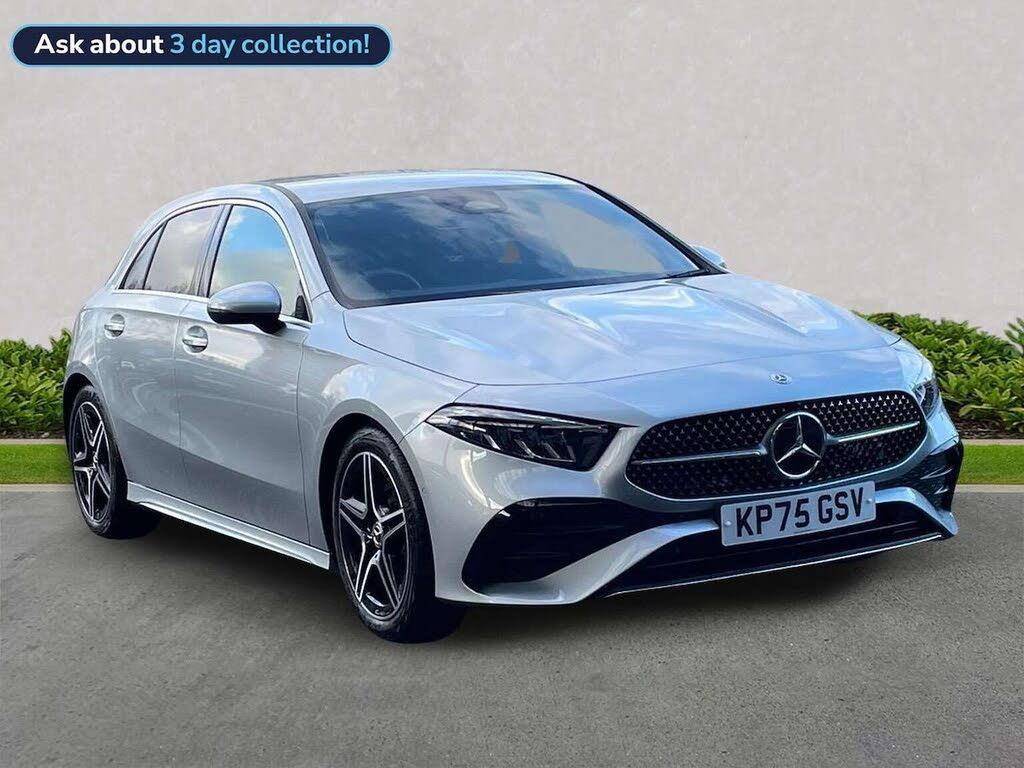 This Mercedes-Benz A Class A200h AMG Line (Executive) from 2025 is a superb example, having had only one owner since new and being manufacturer approved by Mercedes-Benz. It features a responsive 1.3 litre petrol hybrid engine, meeting Euro 6 emission standards, and comes in the stylish AMG Line trim. Inside, you'll find the comfort of heated front seats, dual Bluetooth interfaces for seamless connectivity, and a 100W Mercedes-Benz sound system. The THERMATIC automatic climate control ensures a pleasant cabin temperature, while the Parking Package, complete with a rear camera, makes manoeuvring effortless. The performance of this A Class is impressive, achieving 0-62mph in just 8.2 seconds, demonstrating its dynamic capability. This acceleration figure, along with its generous boot space, highlights how this particular vehicle offers a superior driving and ownership experience compared to others in its class. FINISHED IN HIGH TECH SILVER, MERCEDES-BENZ OF WOLVERHAMPTON ARE PLEASED TO OFFER THIS LOW MILEAGE A CLASS EX DEMONSTRATOR.... IF YOU WOULD LIKE TO MAKE AN APPOINTMENT TO VIEW OR TEST DRIVE THIS VEHICLE, PLEASE CALL TO SPEAK TO ONE OF OUR SALES TEAM HERE AT MERCEDES WOLVERHAMPTON ON 01902 427897. A VIDEO TOUR IS ALSO AVAILABLE ON REQUEST. PLEASE CALL AND QUOTE KP75 GSV TO ENSURE YOU DO NOT MISS OUT ON THIS WONDERFUL VEHICLE.