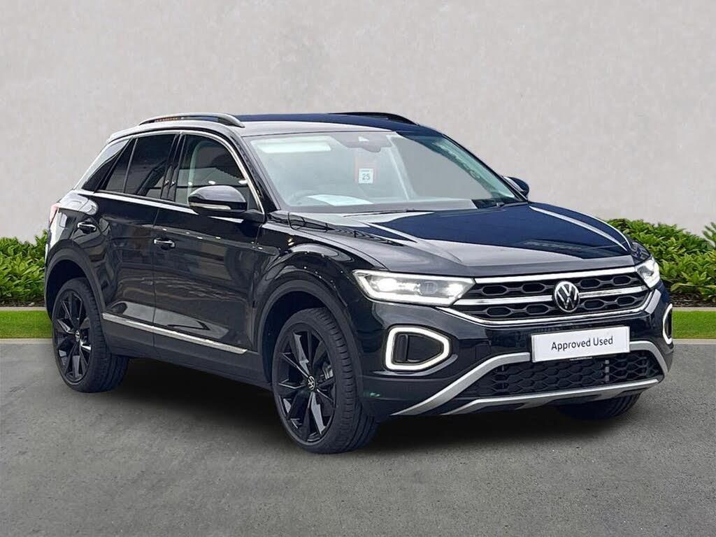 VOLKSWAGEN T-ROC 1.5 TSI Style 5dr DSG Mileage: 150 Miles Registration: LB75CJV Status: Pre-Registered Available from 31st January 2026 Description: This stunning Pre-Registered Volkswagen T-Roc Style DSG combines premium design, performance, and technology. Finished in Deep Black Pearl with a Grey-Black-Silver Anthracite interior, it offers sporty styling with the 19" Misano Black alloy wheels and a black roof rail finish. Inside, enjoy comfort and convenience with heated front seats, Discover Media navigation with streaming and internet, adaptive cruise control, and proactive passenger protection. Specification Highlights: Paint & Interior: Deep Black Pearl Metallic Grey-Black-Silver Anthracite interior Exterior: 19" Misano Black alloy wheels Black roof rails Comfort & Convenience: Heated front seats Washer fluid level indicator Leather-wrapped multifunction steering wheel with DSG shift paddles In-Car Entertainment & Connectivity: Discover Media Navigation system including Streaming & Internet Wireless App-Connect e-SIM connectivity Dynamic road sign display 6 speakers, front and rear Driver Assistance & Safety: Adaptive Cruise Control (ACC) with speed limiter Front Assist with Autonomous Emergency Braking High Beam Assist Proactive passenger protection system Alarm with interior protection Central locking system with SAFELOCK Tool kit and jack Volkswagen Approved Used Benefits: Standard cover with an Approved Used purchase: ? 1 Year Volkswagen Warranty ? 1 Year Roadside Assistance When financed with Solutions PCP from Volkswagen Financial Services: ? 2 Services included (worth £522) ? 2 Years Volkswagen Warranty (worth £284) ? 2 Years Roadside Assistance (worth £120) ? £250 Deposit Contribution (subject to vehicle age and finance terms)* Total PCP Added Value: £926 (*Eligibility and finance terms apply)