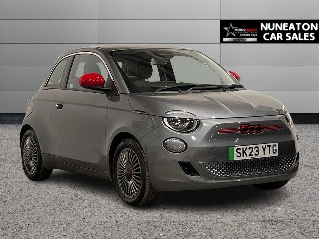 Fiat 500E 42kWh RED - Apple Car Play, Android Auto, Heated Seats, Sat Nav - Full Fiat Service History This 2023 Fiat 500e RED boasts exceptionally low mileage for its age, having covered just 4000 miles, and comes with a clear vehicle history check. As an electric vehicle, it offers a 42 kWh battery with a maximum range of 199 miles, making it ideal for both city driving and longer journeys. Charging is convenient, with a full charge at home taking approximately 6 hours using a 7kW charger, and rapid public charging can take the battery from empty to 80% in as little as 35 minutes. This RED trim model also features a Winter Pack including heated seats, automatic headlights activated by a dusk sensor, and automatic air conditioning for a comfortable cabin environment. Further enhancing your driving experience, this Fiat 500e is equipped with wireless Apple CarPlay and Android Auto, allowing seamless integration of your smartphone for navigation, music, and calls. These features, combined with its efficient electric powertrain and impressive range, position this 2023 Fiat 500e RED as a superior choice for those seeking a stylish, modern, and eco-friendly vehicle. Its low mileage and comprehensive features ensure it stands out from other cars in its class. Combining comfort, performance and practicality, this model is perfect for relaxed daily driving, commuting and urban use. Service History Full Fiat service history recorded as follows: • 30/06/2025 @ 2825 miles • Feb 2026 Nuneaton Car Sales Key Features & Specification • 16 Inch Alloy Wheels • LED Daytime Running Lights • Cruise Control • Air Conditioning / Climate Control • Satellite Navigation • DAB Digital Radio • Bluetooth Connectivity • USB / Voice Control • ISOFIX Child Seat Mounts • Driver Assistance Features • Start/Stop Technology Vehicle Information • Registration: 01/03/2023 • Mileage: 3597 miles • Fuel Type: Electric • Transmission: Automatic • Owners: [2] • HPI Status: Clear Why Buy From Nuneaton Car Sales? * Multi Award-Winning Dealership * AA Approved Dealer * NO ADMIN FEES * 12 Months AA Breakdown Cover * Multi-Point Vehicle Inspection * Free MOT if due within 6 months * Competitive Finance Available * Part Exchange Welcome * Click & Collect & Home Delivery Available * Same Day Drive Away on most vehicles Extra Peace of Mind Personalised walk-around videos available on request. All vehicles professionally prepared and valeted prior to sale. This vehicle is price-checked daily against the UK market to ensure excellent value. Every effort is made to ensure vehicle information is accurate. Specification data may be supplied by a third-party source. If a particular feature is important to your purchase decision, please contact our sales team who will be happy to confirm.