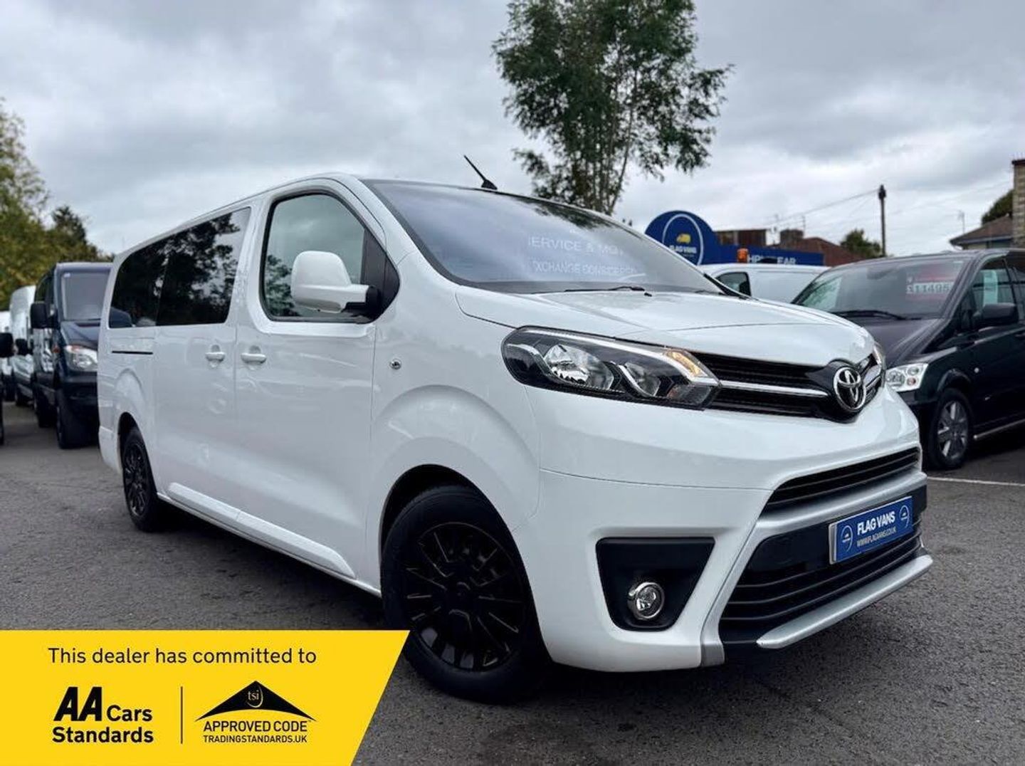 2018 Toyota ProAce Verso L2 Shuttle 9 Seater | EURO 6 ULEZ COMPLIANT | NO VAT A spacious and practical 9-seat shuttle, ideal for family, executive travel or business use. Presented in great condition and ready to drive away. Full service history New cambelt kit July 2025 New clutch & flywheel May 2025 MOT until 25th February 2027 no advisories Spec includes: Climate control, cruise control, rear parking sensors, dual side sliding doors, electric windows & mirrors, Bluetooth. Included with Flag Vans: AA Approved Dealer Recently serviced 3-month warranty (extendable up to 24 months) 12-month breakdown cover Finance available Nationwide delivery Part exchange welcome No admin fees Price: £16,995 NO VAT Flag Vans Quality Vans. Trusted Family Service www.flagvans.co.uk