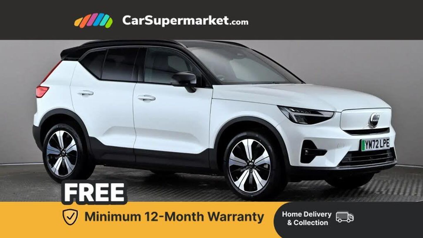 Bluetooth, Cruise Control, Adaptive Cruise Control, Blind Spot Monitoring, Sat Nav, Apple CarPlay, Android Auto, Digital Radio;All-electric XC40 Recharge Plus featuring Bluetooth, cruise control, adaptive cruise control, blind spot monitoring, satellite navigation, Apple CarPlay, Android Auto and digital radio. Finished in Crystal White with Charcoal textile interior. Options cost: £850.00. Last serviced 23/02/2026. MOT due 18/01/2027.