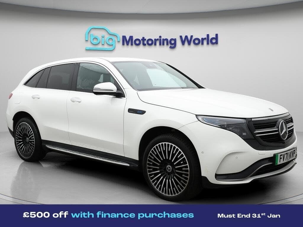 £500 towards your finance depo-Our Mercedes-Benz EQC is finished in White. Specification includes a range of fantastic features including £500 towards your finance deposit, Comfort Pack, Panoramic Roof, All Wheel Drive, 21'' Alloy Wheels, Leather Seats, Air Suspension, Apple CarPlay, AMG body styling, Parking Pack Specification information is supplied by CAPHPI and may vary to the actual car. This data does not form any part of a buying contact. Please check specification prior to purchase in-store. The MOT is valid until February 2027, visit bigmotoringworld.co.uk for more photos, a 360 tour, service history and a free HPI report.Were BIG on peace of mind and this White Mercedes-Benz EQC has completed our comprehensive 200 point inspection and passed all checks. Its ready for you to drive away with immediate collection in-store. We include a 90-day warranty as standard plus an option to extend for up to 3 years.Reserve this car exclusively for you, safely and securely at bigmotoringworld.co.uk, with a fully refundable £99 deposit. Test drive before you buy, with no commitment, no hassle and a completely haggle free experience. Still searching and want to see thousands more cars? We are BIG on choice with over 8000 cars to choose from.Visit our award winning web site bigmotoringworld.co.uk.Were Big Motoring World and were BIG on what matters to you.