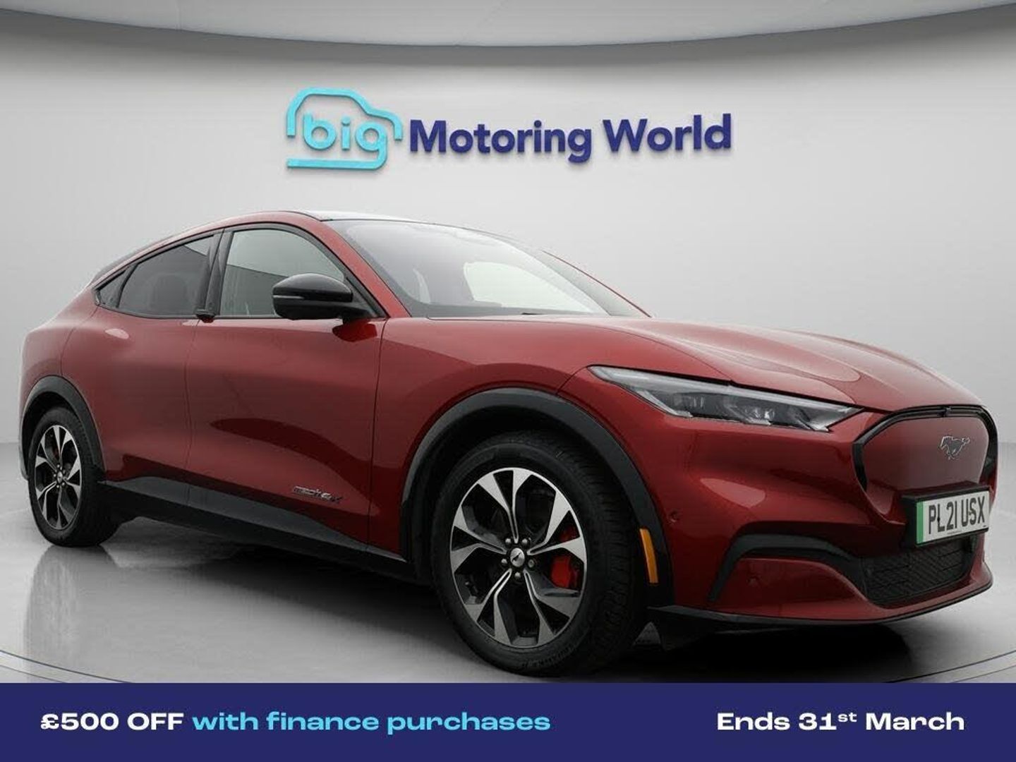 £500 towards your finance depo-Our Ford Mustang Mach-E comes with optional extras worth £1,150. Specification includes a range of fantastic features including £500 towards your finance deposit, Panoramic Roof, All Wheel Drive, 19'' Alloy wheels, Leather Seats, Apple CarPlay, Adaptive Cruise Control, Bang & Olufsen Speakers, Premium Sound System, Privacy Glass Specification information is supplied by CAPHPI and may vary to the actual car. This data does not form any part of a buying contact. Please check specification prior to purchase in-store. The MOT is valid until February 2027, visit bigmotoringworld.co.uk for more photos, a 360 tour, service history and a free HPI report.Were BIG on peace of mind and this Red Ford Mustang Mach-E has completed our comprehensive 200 point inspection and passed all checks. Its ready for you to drive away with immediate collection in-store. We include a 90-day warranty as standard plus an option to extend for up to 3 years.Reserve this car exclusively for you, safely and securely at bigmotoringworld.co.uk, with a fully refundable £99 deposit. Test drive before you buy, with no commitment, no hassle and a completely haggle free experience. Still searching and want to see thousands more cars? We are BIG on choice with over 8000 cars to choose from.Visit our award winning web site bigmotoringworld.co.uk.Were Big Motoring World and were BIG on what matters to you.